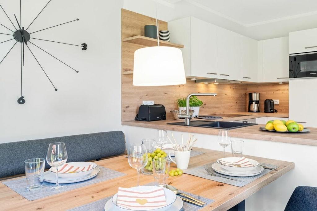 Denne smukke ferielejlighed af høj kvalitet, bygget i 2021, tilbyder 64 kvadratmeter plads til op til 4 personer. Den åbne og lyse opholdsstue med et fuldt udstyret køkken indbyder til at lave mad sammen eller tilbringe en afslappende aften med at se tv på sofaen. På terrassen kan I nyde morgenmaden sammen eller afslutte dagen med en grill. Om sommeren er der en trækvogn/klype til rådighed, og et absolut højdepunkt er, at ejerne stiller en smuk strandstol til rådighed lige på stranden nær molen til afslapning i en maritim atmosfære. På koldere dage kan I hygge jer foran gaspejsen i opholdsstuen efter lange gåture på stranden. Automatisk ventilation sikrer et behageligt indeklima. Begge soveværelser har komfortable senge med madrasser af høj kvalitet. Mørklægningsgardiner er tilgængelige.