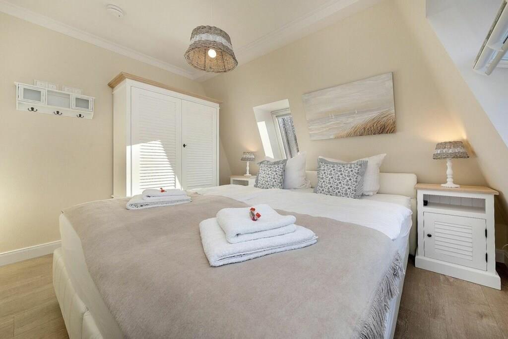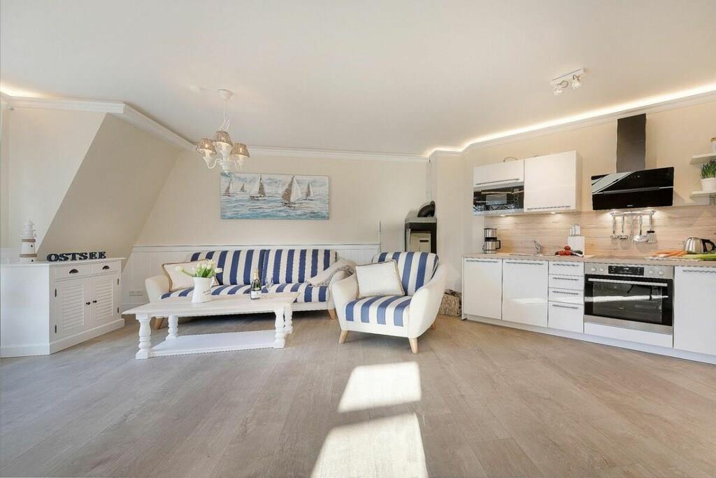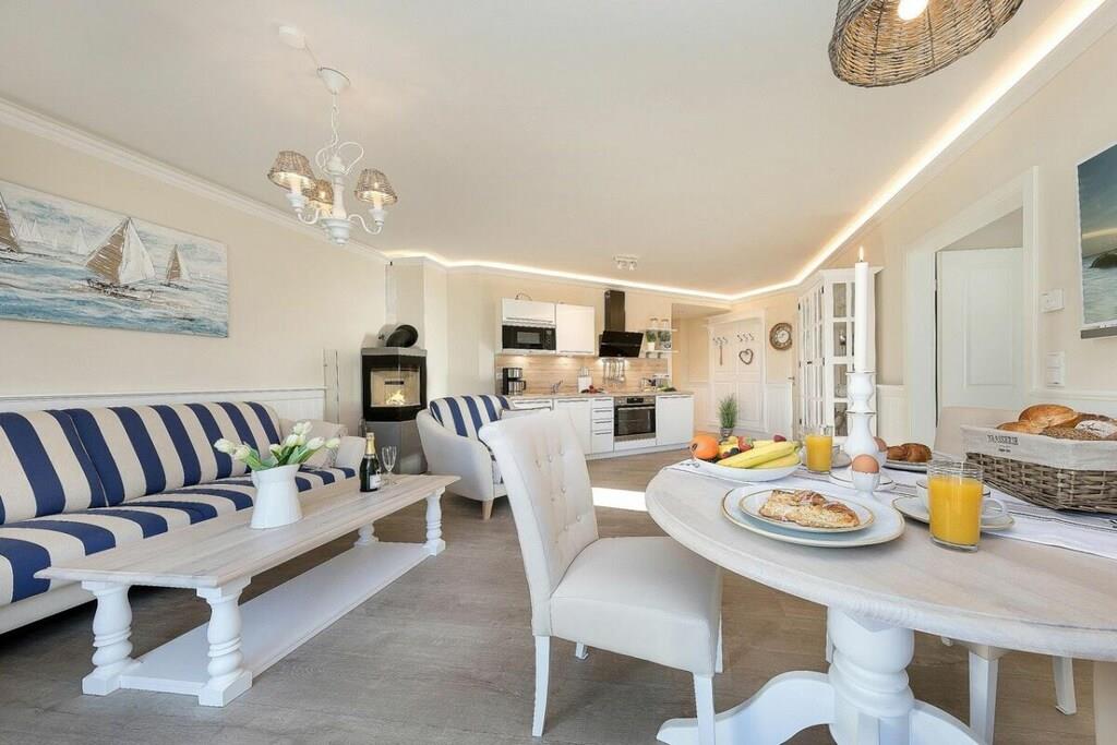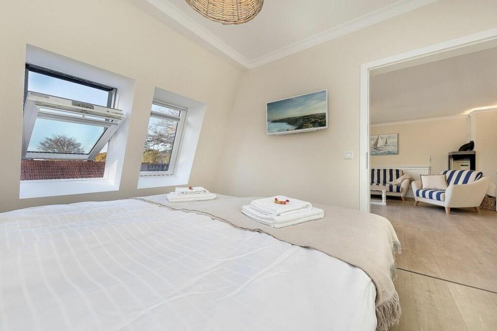Villa Strandblick i Østersø-byen Zingst tilbyder en unik ferielejlighed med en førsteklasses beliggenhed ved stranden og havudsigt. Alle områder af Villa Strandblick er tilgængelige for vores gæster med mobilitetsbegrænsninger. Uanset om du booker en ferielejlighed med havudsigt på øverste etage eller ønsker at bruge wellness-området, er alt let tilgængeligt med elevator. Alle lejligheder er også let tilgængelige for kørestolsbrugere takket være deres brede døråbninger. Denne treværelseslejlighed med stor balkon og delvis havudsigt (ikke tilgængelig i højsæsonen) tilbyder alt, hvad du kan ønske dig på ferie. Du kan nyde ren luksus, da lejligheden har en pejs. Efter lange gåture på stranden kan du slappe af i det lille, men elegante wellness-område på øverste etage. Der kan du slappe af i saunaen med vinduet eller tænde din egen pejs i din lejlighed. En familiedrevet virksomhed, kærligt indrettet i maritim stil. Om morgenen kan du tage din badekåbe på og tage en svømmetur til stranden ved solopgang. Bagefter kan du hente friske rundstykker direkte fra den mobile bagerivogn, der er parkeret udenfor (kun sæsonbestemt). Ferielejligheden har et fuldt udstyret moderne køkken med opvaskemaskine, emhætte, komfur – alt hvad du måtte have brug for. Hvert soveværelse har et ekstra fladskærms-tv. Badeværelset er udstyret med bruseniche, gulvvarme og spa-bruser. Opholdsstuen har indirekte belysning integreret i stuklisterne for at skabe en hyggelig atmosfære om aftenen. På Villa Strandblick kan du forvente et personligt præg. Vi kan endda arrangere fritidsaktiviteter, koncerter, massage, kranobservationsture og sejlture for dig inden din ankomst. Bymidten ligger kun en kort gåtur langs stranden. Vi ser frem til at byde dig velkommen til Villa Strandblick og sikre, at du får en uforglemmelig ferie. Familien von Klitzing