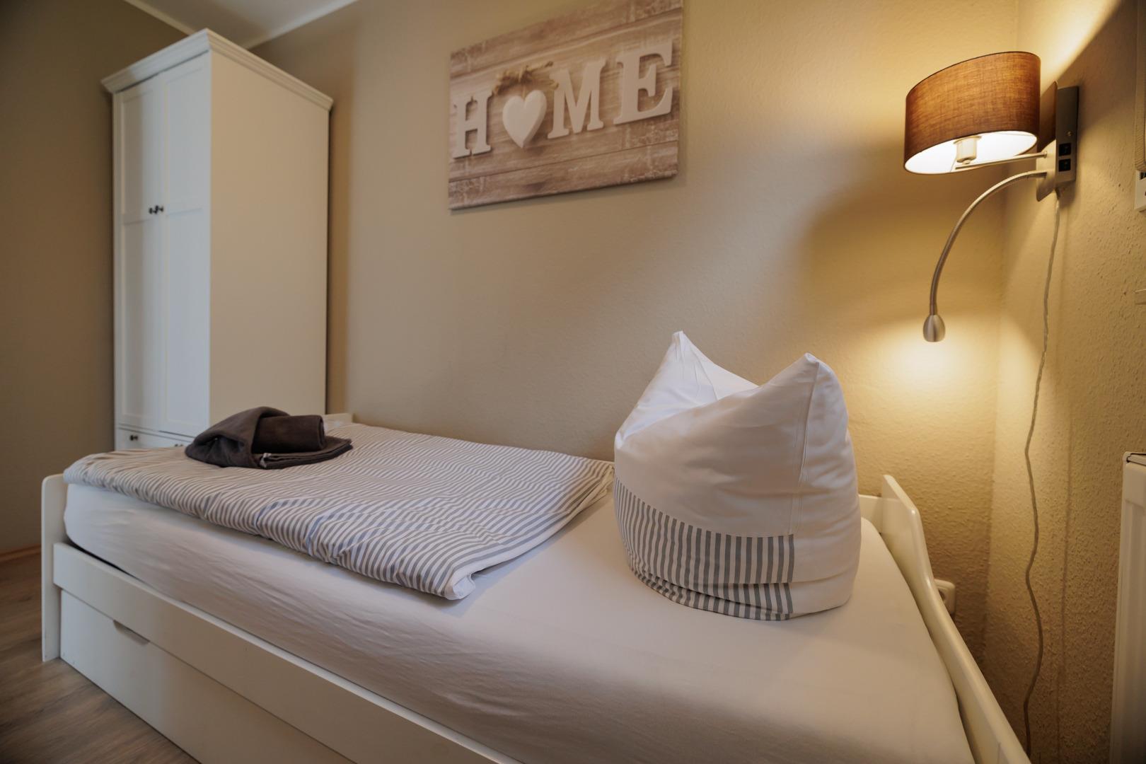Die Ausstattung ist insgesamt gut. Die Einrichtung maritim modern. Der Zugang zum zweiten Schlafzimmer geht aber direkt von der Wohnküche aus, was zu Geräuschbelastigung im kleinen Zimmer führt. Außerdem ist das Zimmer sehr klein und hat nicht einmal einen kleinen Nachttisch. Es ist definitiv nur für ein Kind geeignet, auf keinen Fall für zwei und auch nicht für eine dritte erwachsene Person.