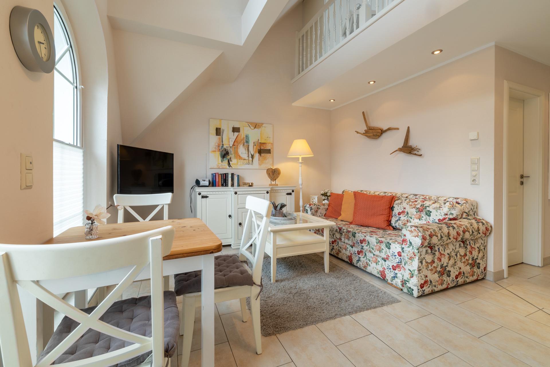 Entdecken Sie den Charme und die Eleganz unserer romantischen Maisonettewohnung – der ideale Rückzugsort für Paare, die eine unvergessliche Zeit an der Ostsee erleben möchten. Diese einzigartige Ferienwohnung besticht durch ihr offenes Raumkonzept und liebevolle Details, die eine warme und einladende Atmosphäre schaffen.