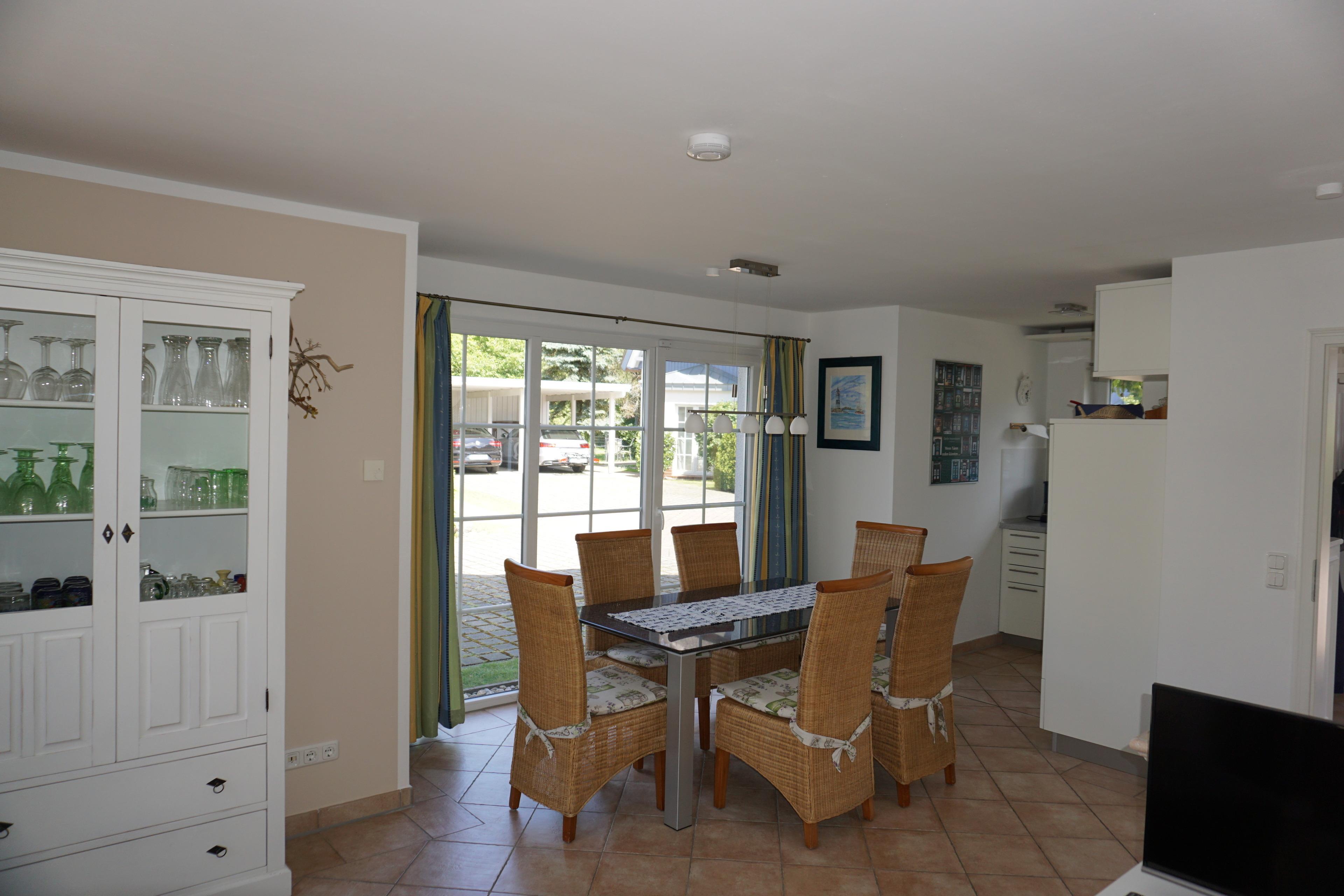 Gemütliche DHH mit Rohrdach, gelegen in einem Gebiet ohne Durchgangsverkehr, ruhige Lage und doch zentral. Zum Strand und ins Zentrum sind es nur wenige Gehminuten. 3 Schlafzimmer und 2 Bäder/WC, Terrasse mit Gartenmöbeln, 2 Liegestühle, Carport mit Abstellraum für Fahrräder und PKW-Stellplatz vorhanden. 1 Schlafzimmer mit Doppelbett (1,80 x 2 m), 1 Schlafzimmer mit 2 Einzelbetten (0,90 x 2 m)1 Schlafzimmer mit Schlafcouch für 2 Personen, 1 Bad mit Dusche und WC, 1 Bad mit Wanne und WC, 1 Gäste WC, Insektenschutzgitter, Vollholzmöbel. Offenes Wohn-/Esszimmer mit Kamin, Sitzecke mit Couch und Sessel, LED-SAT-TV, DVD, Stereoanlage, Internetzugang über WLAN, Fußbodenheizung, Großer Esstisch mit Korbstühlen, Volleingerichtete Küche mit Ceranfeld, Backofen, Mikrowelle, Kaffeemaschine, Eierkocher, Wasserkocher, Kühlschrank mit ***Gefrierfach, Geschirrspüler, Waschmaschine und Staubsauger.