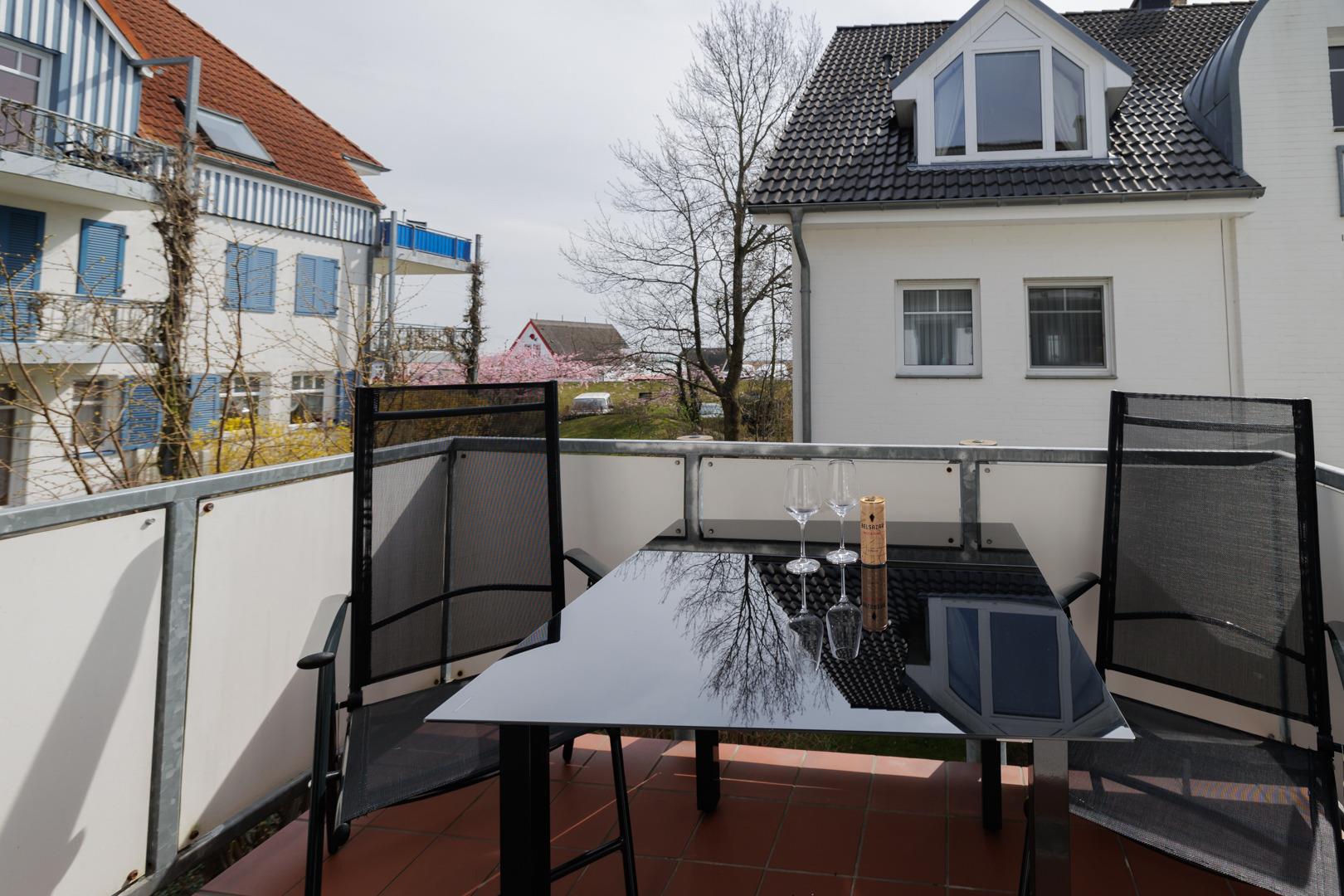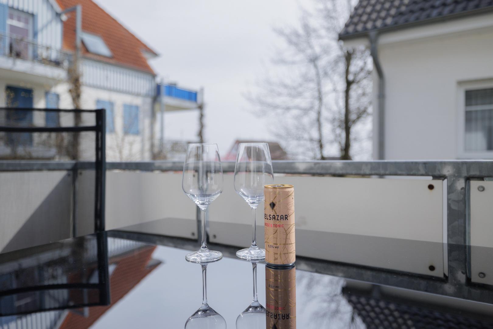 Für den abendlichen Schlummertrunk ist der schöne Balkon ideal.