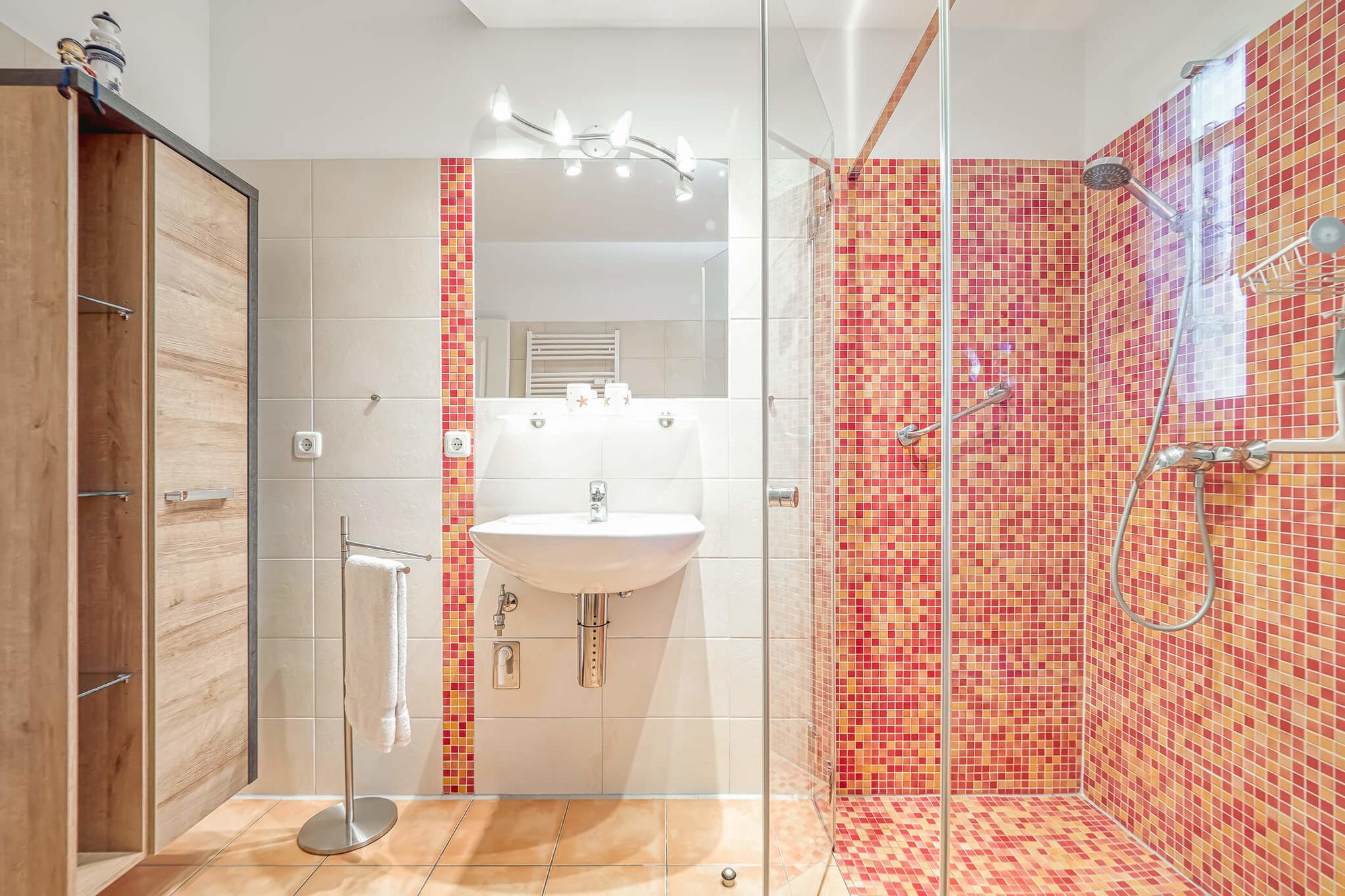 Zu Ihrer Ferienwohnung gehören ein schönes, geräumiges und helles Wohnzimmer mit einer offenen und sehr gut ausgestatteten Küche, ein liebevoll eingerichtetes Schlafzimmer, ein modernes Bad mit Dusche und eine kleine Abstellkammer.
