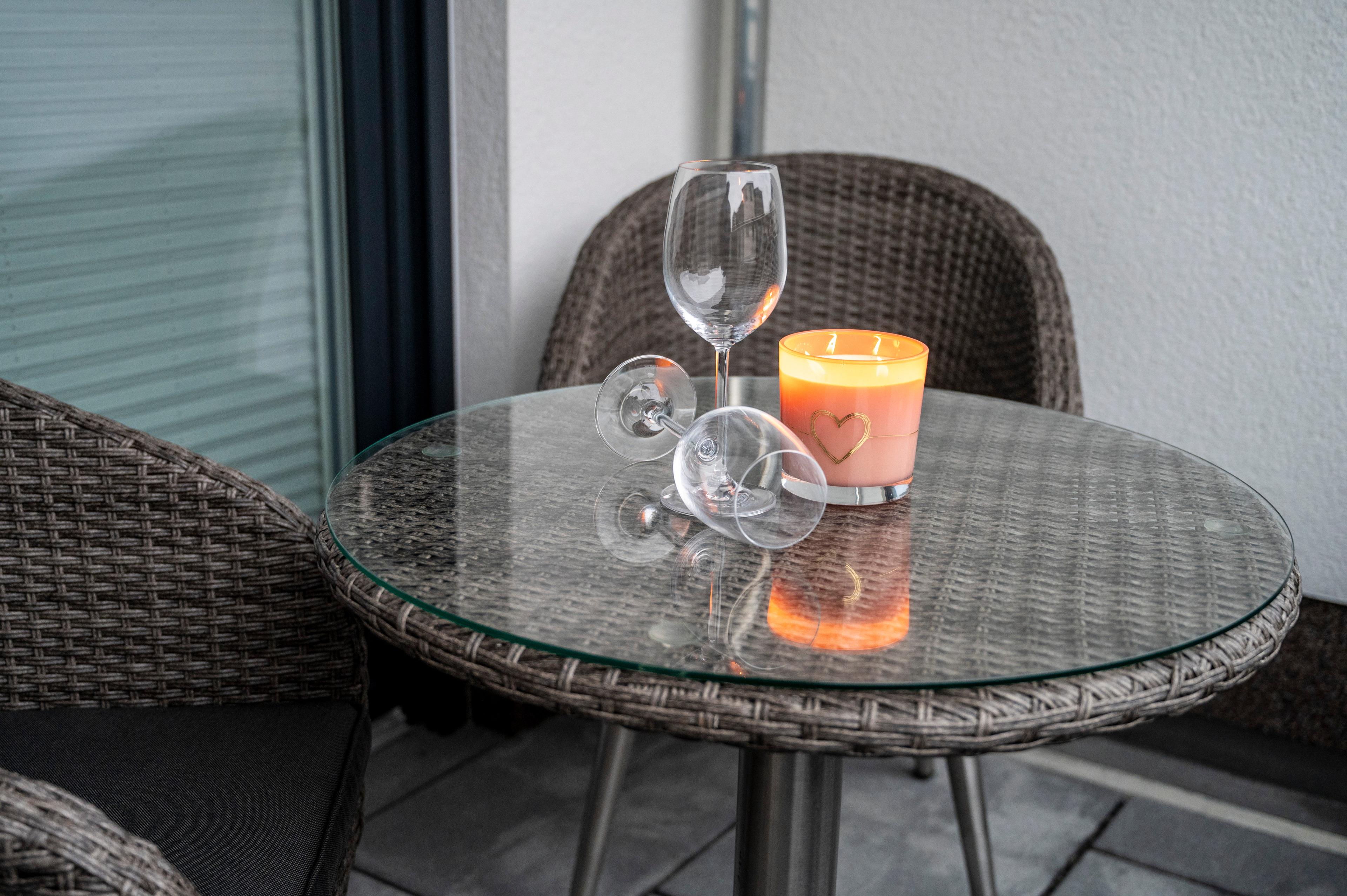 Für die Zubereitung eines leckeren Frühstücks steht Ihnen eine exklusive Einbauküche mit hochwertiger Ausstattung zur Verfügung. Je nach Lust und Laune können Sie sich dieses auch auf dem zugehörigen Balkon schmecken lassen. Hier können sich aber genauso gut von der Abendsonne verwöhnen lassen.