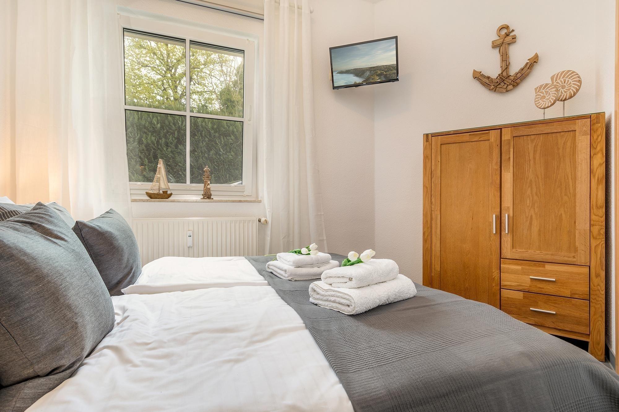 Die Ferienwohnung bietet ein einladendes Schlafzimmer mit einem Doppelbett und einem Fernseher, ideal für entspannte Stunden. Bei Bedarf kann ein Babybett aufgestellt werden. Das helle, geflieste Badezimmer verfügt über eine Dusche, einen Abstellschrank und eine Toilette. Im gemütlichen Wohnschlafzimmer lädt ein neues Sofa zur Entspannung ein, das auch als Schlafcouch mit einer Matratze von 1,40 x 2,00 m genutzt werden kann. Die Küchenzeile im Wohnbereich strahlt in einem ansprechenden Rotton und ist mit einem Elektro-/Gasherd, einer Kaffeemaschine, einem Toaster und einem Wasserkocher ausgestattet. Geschirr und Besteck sind ebenfalls vorhanden. Die Wohnung ist allergikergeeignet und bietet Internet mit WLAN, eine HiFi-Anlage, einen TV, sowie Brettspiele für gesellige Abende. Fliegengitter, Rauchmelder und eine Heizung sorgen für zusätzlichen Komfort.