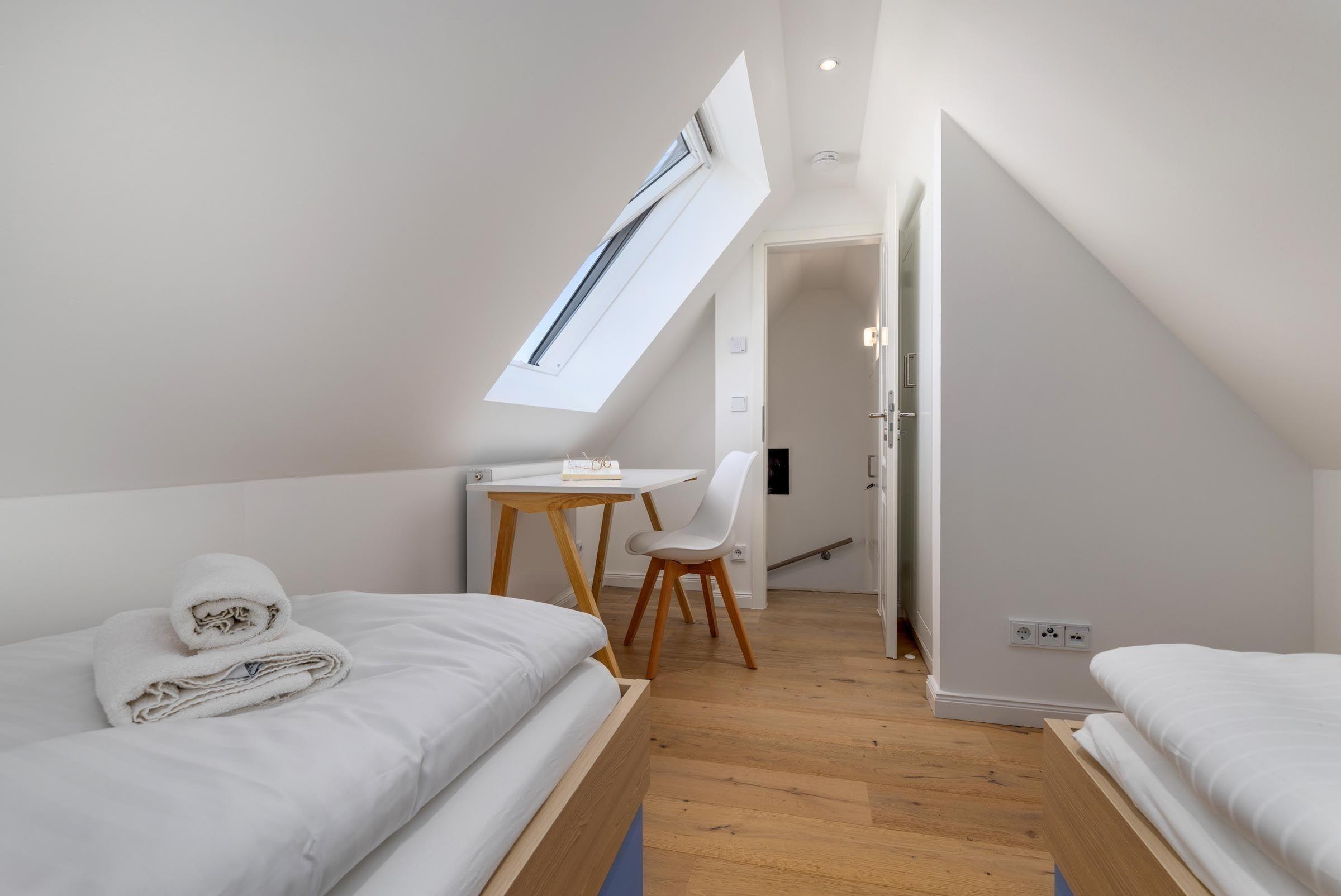 In dieser stilvoll eingerichteten Ferienwohnung erwartet sie eine moderne und komfortable Ausstattung. Sie findet drei Schlafzimmer vor, darunter zwei mit Doppelbetten und eines mit zwei Einzelbetten, perfekt für Familien oder Gruppen. Die offene Küche ist mit hochwertigen Geräten wie einem Geschirrspüler, einem Elektro-/Gasherd, Backofen, Mikrowelle und Kühlschrank ausgestattet, ergänzt durch eine Kaffeemaschine und einen Wasserkocher für den perfekten Start in den Tag.