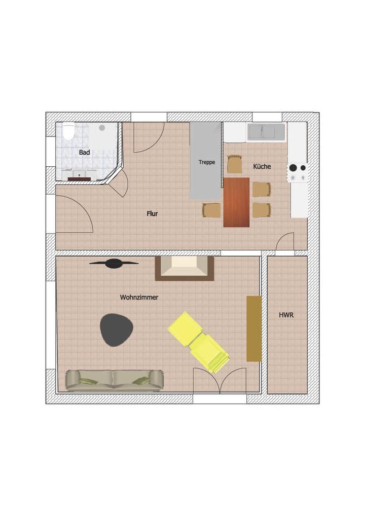 Im Badezimmer des EG befindet sich eine Dusche und WC.