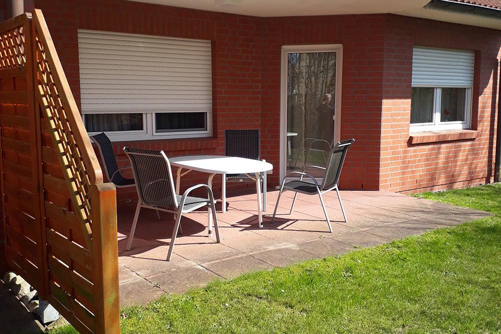 63 qm im Erdgeschoss, separater Eingang, West-Terrasse, 2 Schlafzimmer - für 4 Personen und 1 Hund