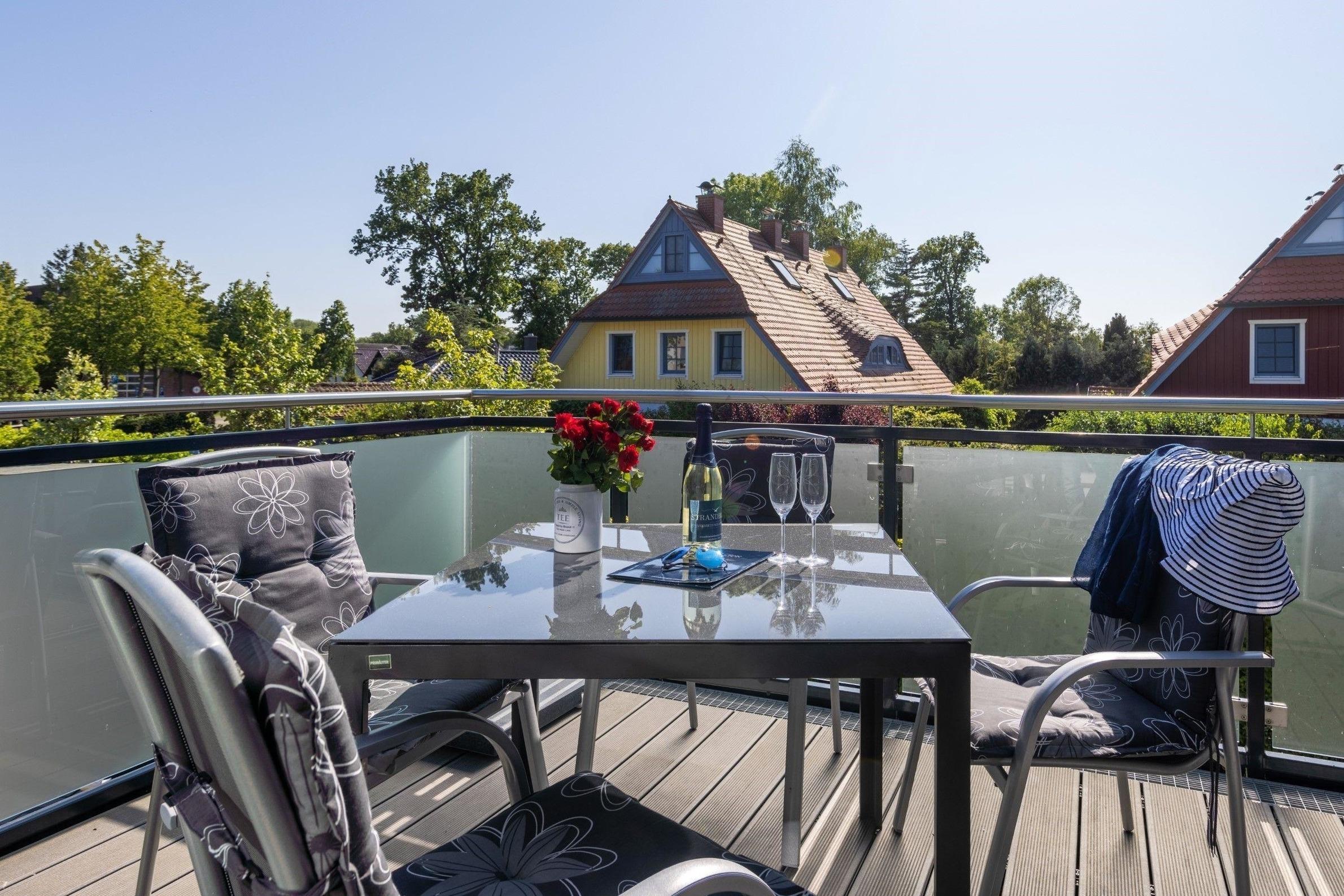 Die Ferienwohnung bietet einen einladenden Balkon, der privaten Genuss im Freien ermöglicht. Hier kann man entspannen, die frische Luft genießen und den Blick auf die Umgebung schweifen lassen. Der Außenbereich ist ideal, um die Sonnenstrahlen zu tanken oder einen entspannten Abend mit Blick auf den Sonnenuntergang zu verbringen. Ein perfekter Rückzugsort für Ihre Auszeit.