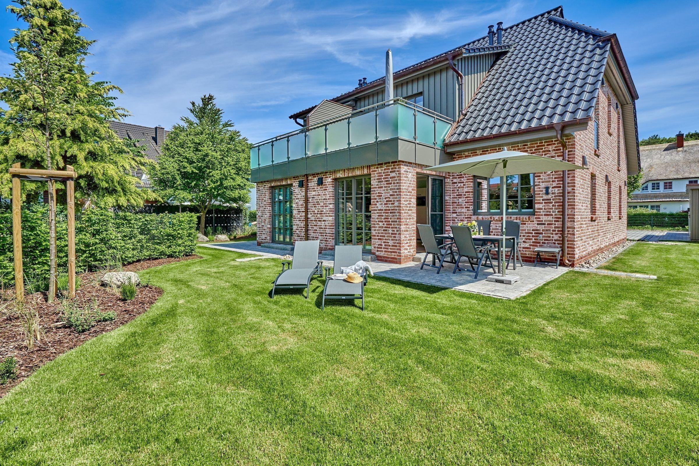 Die Ferienwohnung bietet einen eigenen Garten mit einer großzügigen Liegewiese, die ideal zum Entspannen einlädt. Hier stehen bequeme Gartenliegen bereit, und ein Elektrogrill ermöglicht gesellige Barbecues im Freien. Die private Terrasse ist der perfekte Ort, um die Sonne zu genießen und die Ruhe der Umgebung zu erleben.