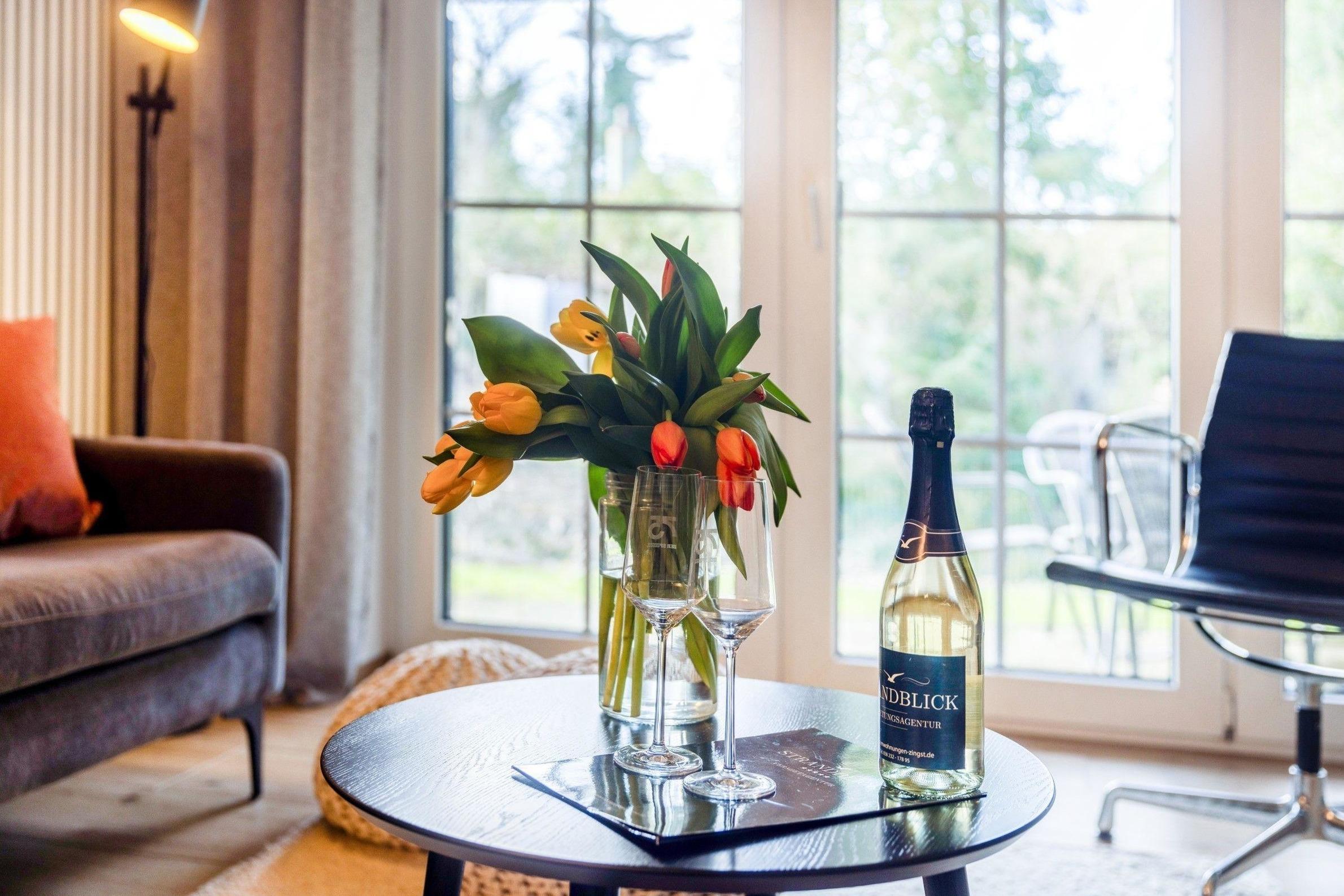 Die Ferienwohnung befindet sich in einer ruhigen Lage in Zingst, nur wenige Gehminuten vom idyllischen Strand entfernt. Der feine Sandstrand, ideal für entspannende Tage am Wasser, ist in etwa 1 Kilometer erreichbar. Für aktive Urlauber gibt es zahlreiche Möglichkeiten wie Angeln, Reiten, Windsurfen und Nordic Walking entlang der malerischen Küstenlandschaft. Das Zentrum von Zingst mit Einkaufsmöglichkeiten und gemütlichen Cafés liegt ebenfalls nur etwa 1 Kilometer entfernt. Der nahegelegene Hafen bietet Bootsausflüge und die Möglichkeit, segeln zu gehen. Für Erholungssuchende stehen Wellnessangebote, Massagen und Kosmetikbehandlungen in der Umgebung zur Verfügung. Auch kulturelle Highlights sind schnell zu erreichen, darunter Museen und Veranstaltungen. Die Usedomer Bucht, bekannt für ihre natürliche Schönheit, lädt zur Vogelbeobachtung und zum entspannenden FKK-Baden ein. Diese Lage verspricht vielseitige Aktivitäten für jeden Geschmack.