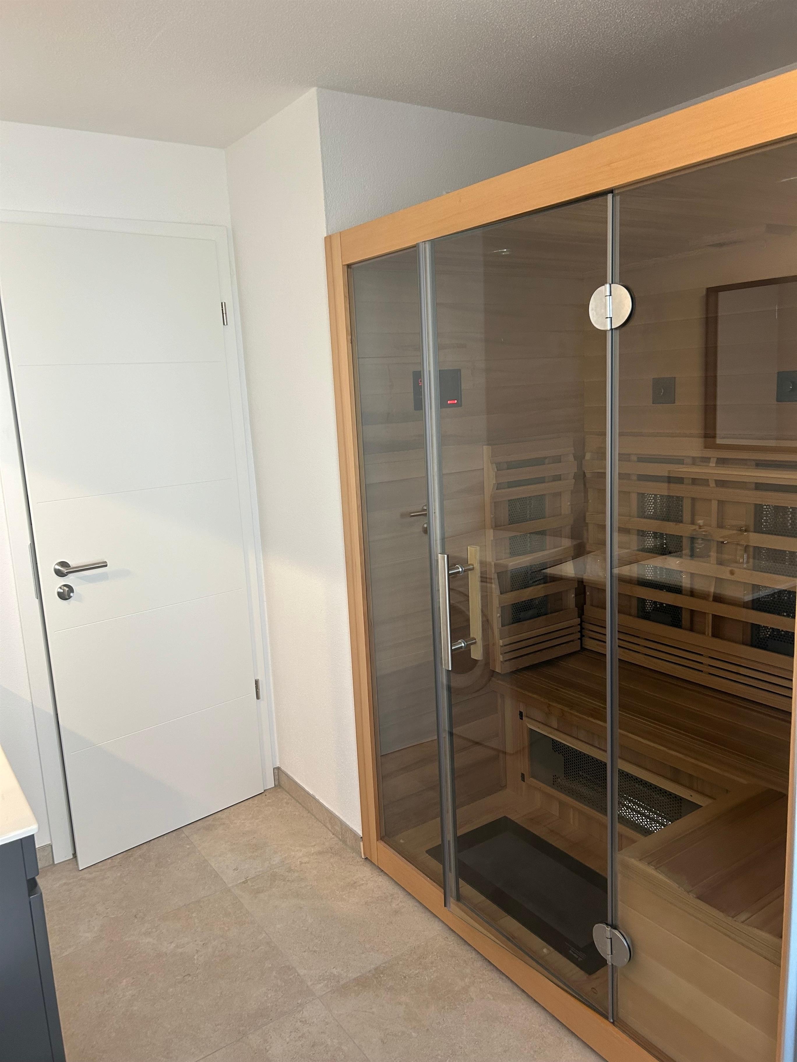 Im Badezimmer der Ferienwohnung befindet sich die Infrarotkabine zur alleinigen Nutzung.
