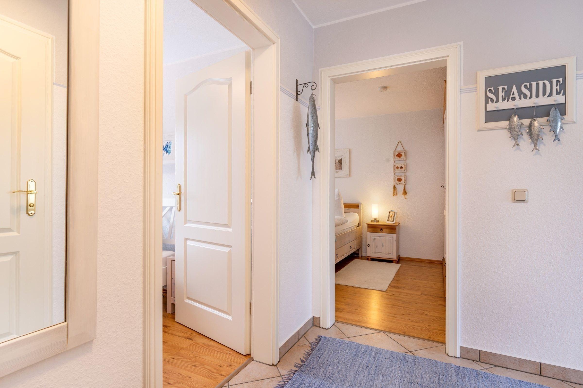 In dieser stilvollen Ferienwohnung erwartet die Gäste eine großzügige und durchdachte Ausstattung. Mit zwei einladenden Schlafzimmern, die jeweils mit einem Doppelbett ausgestattet sind, bietet sie ausreichend Platz für Entspannung und Erholung. Die offene Küche ist ein Highlight der Wohnung und verfügt über modernste Geräte wie einen Geschirrspüler, Elektro-/Gasherd, Backofen und Kühlschrank, ergänzt durch kleine Helfer wie eine Kaffeemaschine, Espressomaschine und Mixer. Ein Esstisch lädt zu geselligen Mahlzeiten ein. Das Badezimmer, ausgestattet mit Fenster, Badewanne und Dusche, sorgt für ein angenehmes Ambiente. Mit Annehmlichkeiten wie Heizung, TV, HiFi-Anlage und einer Waschmaschine, die einen Wäschetrockner bietet, wird der Aufenthalt komfortabel gestaltet. Zudem sind die Räume allergikergeeignet und bieten durch eine gute Ausstattung mit Brettspielen und Gewürzen ideale Voraussetzungen für einen erholsamen Urlaub. Der Parkplatz vor der Tür rundet das Angebot ab.