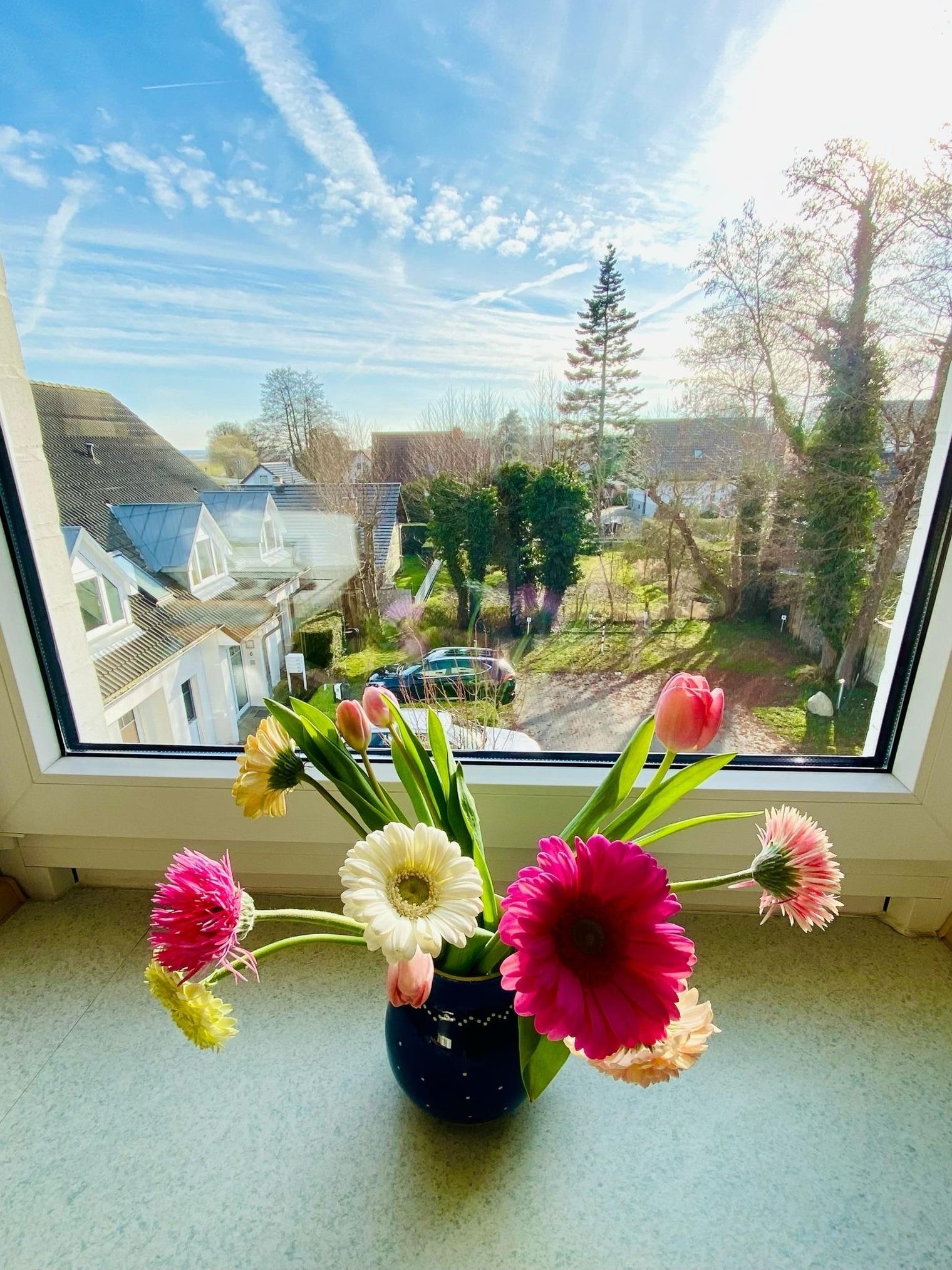 Mit Südbalkon und teilweisem Blick auf den Bodden. Zentral gelegen, aber ruhig in rückwärtiger Lage. Nichtraucher.