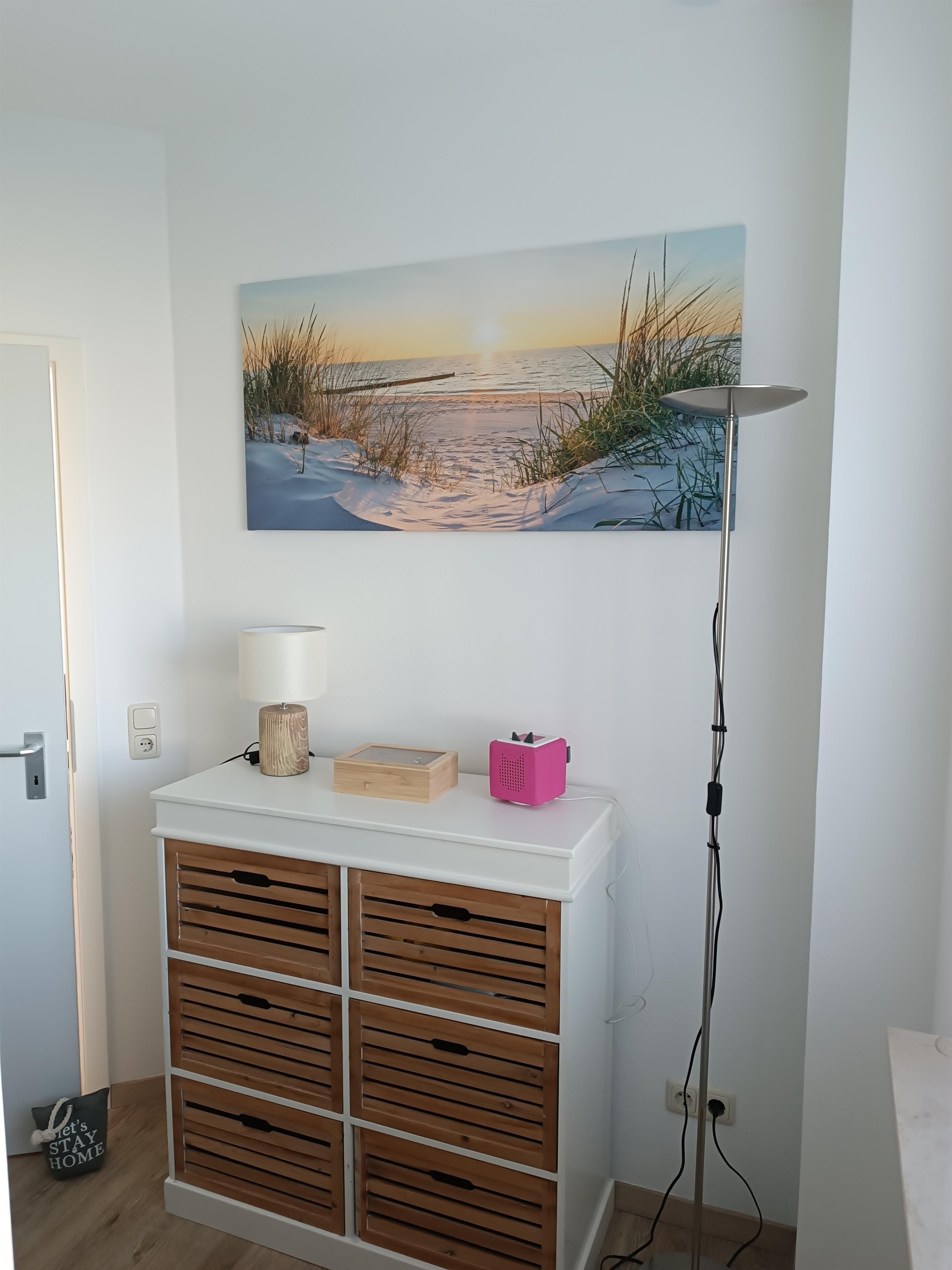 Unsere frisch renovierte (ab März 2025) und liebevoll eingerichtete Ferienwohnung befindet sich im Erdgeschoss. Über den Eingangsbereich gelangen Sie in die helle Wohn,-Küchen und Essbereich inklusive Austritt zur Terrasse. Die Wohnung verfügt über zwei gemütliche Schlafzimmer. Dort befinden sich ein Etagenbett und ein Doppelbett. Auch an unsere kleinen Gäste haben wir gedacht und stellen ein Reisebett und ein Hochstuhl zur Verfügung. Im Duschbad können Sie sich nach einem Strandbesuch mit anschließender Dusche ihre Haare trocknen. Die Küchenzeile ist ausgestattet mit einem Kühlschrank mit Gefrierfach, Geschirrspüler, Backofen mit Elektroherd, Kaffeemaschine, Wasserkocher, Toaster sowie Geschirr, Töpfe und Besteck. Zur Unterhaltung stehen ein TV, Brettspiele, Bücher und WLAN für Sie bereit
