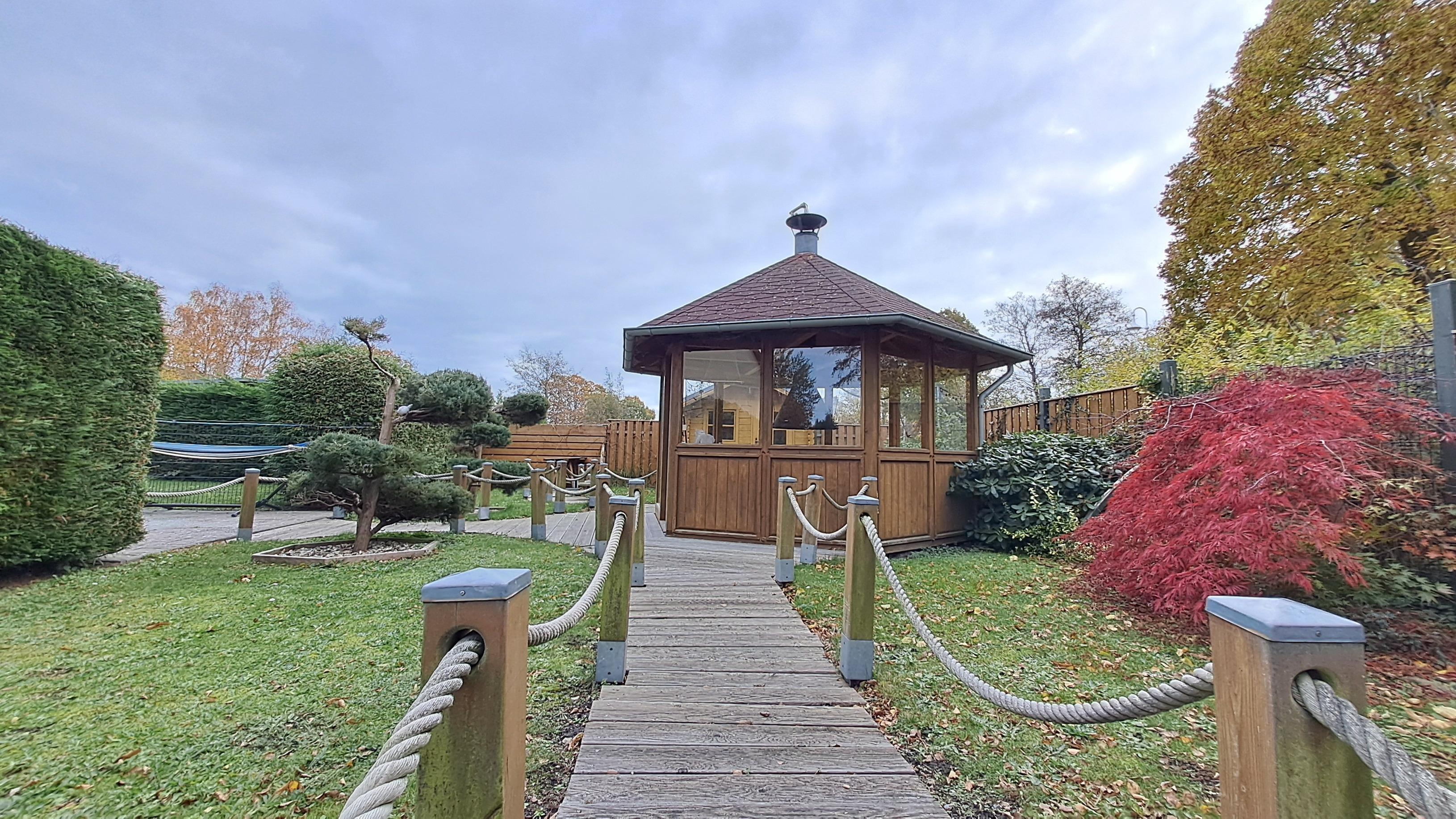 Über ein großes Fenster gelangt viel Licht in den Wohnraum. Von hier aus gelangen Sie auch auf die möblierte TERRASSE, zu der auch ein privater Strandkorb und eine Hängematte gehören. Garten zur Alleinnutzung. Highlight ist eine Grillkota mit Platz für bis zu 6 Personen. Lassen Sie den Abend bei einem wärmenden Feuer ausklingen.