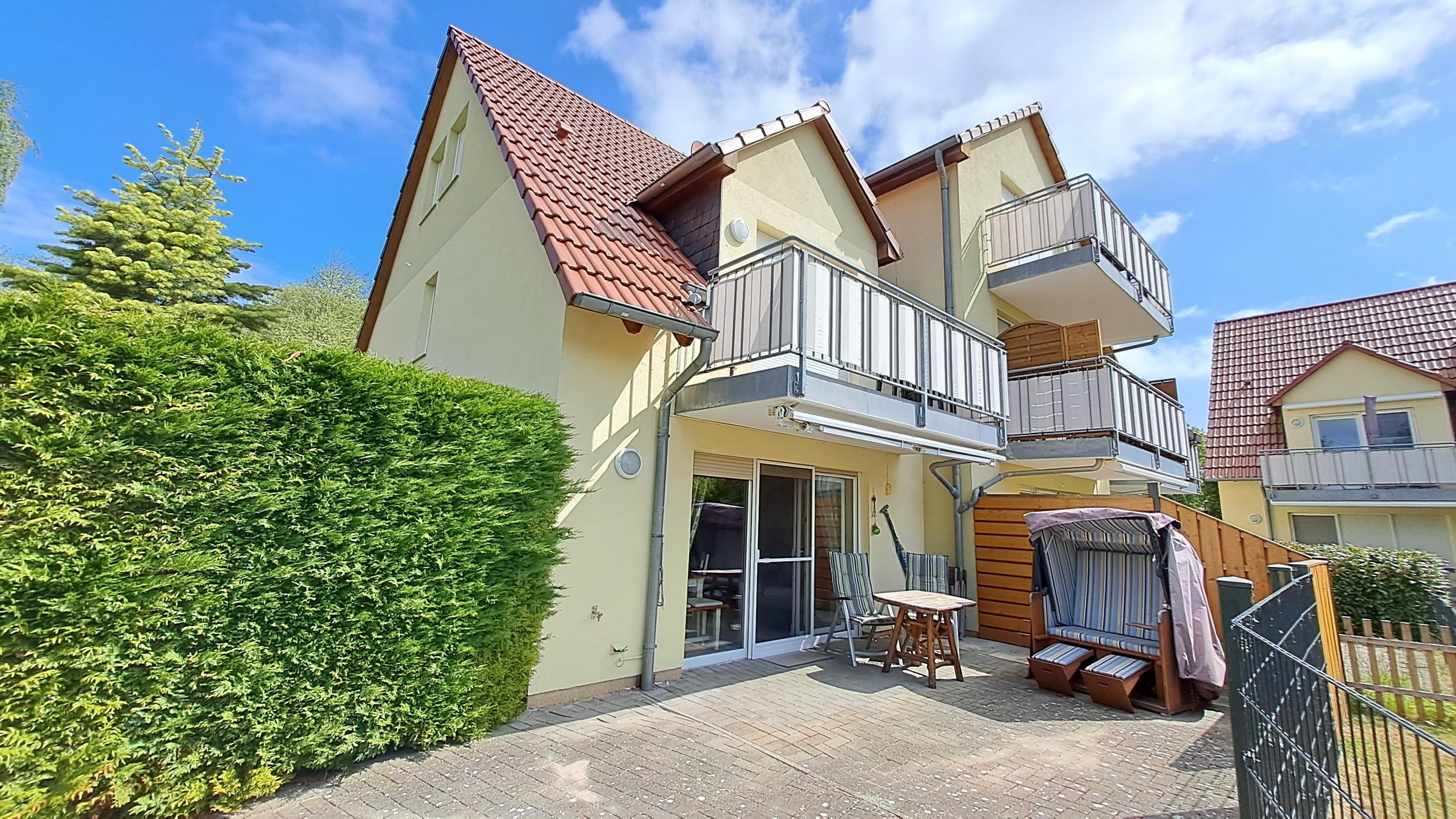 Ihre modern eingerichtete Ferienwohnung (EG) befindet sich nur wenige Gehminuten entfernt vom feinsandigen Strand des Ostseeheilbades Zingst. Sie ist eingebettet in eine liebevoll angelegte und gepflegte Appartementanlage. Im Innenhof steht eine Grillkota, die zu gemütlichen Abenden einlädt, auch bei schlechtem Wetter. Für Kinder gibt es einen kleinen Abenteuerspielplatz. An Ihre Ferienwohnung ist eine große möblierte Terrasse angeschlossen, zu der auch ein eigener Strandkorb gehört.