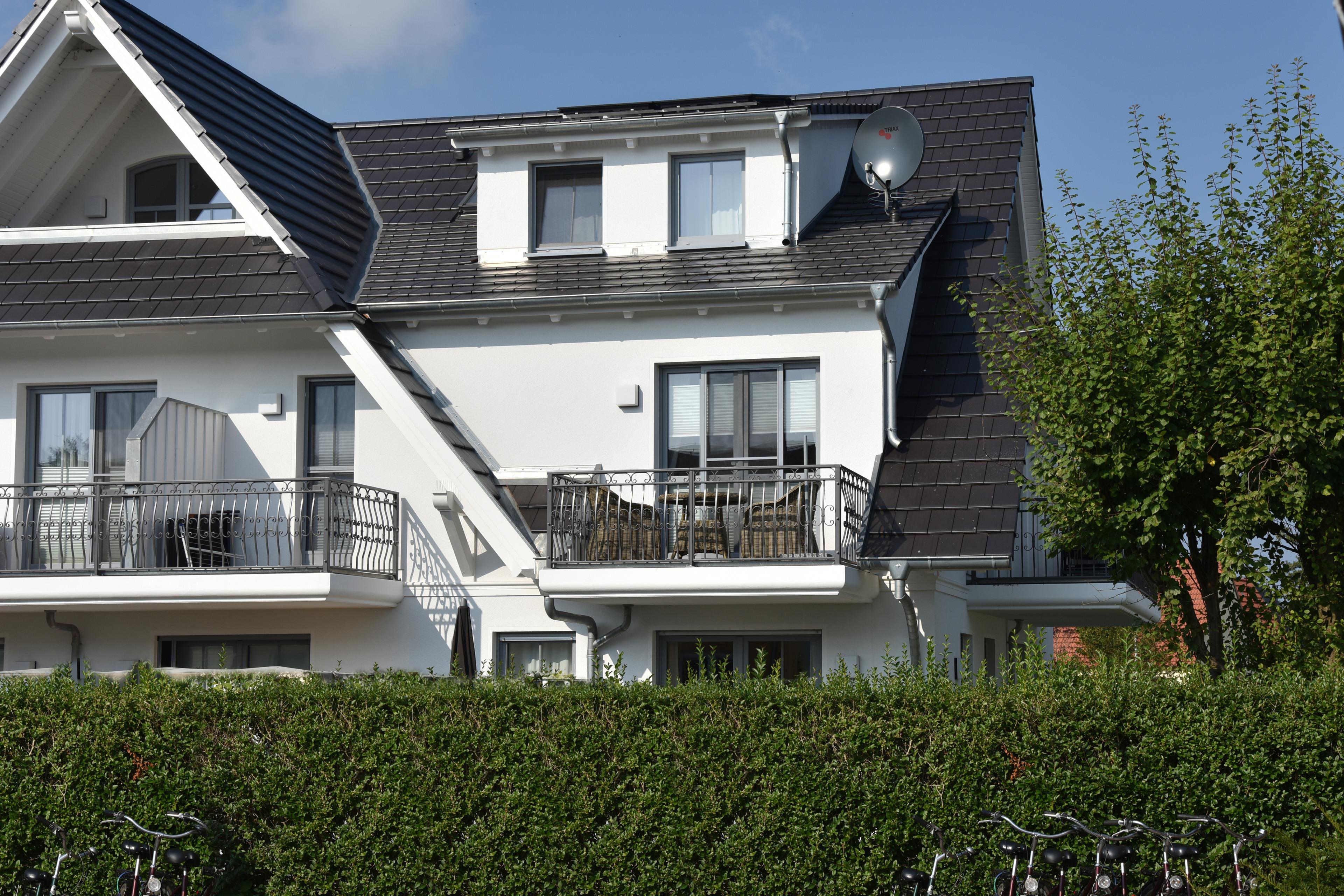 Das Schlafzimmer verfügt über ein Komfort- Doppelbett und einen großen Kleiderschrank. Das Badezimmer bietet Fußbodenheizung, eine große ebenerdige Dusche, einen Kosmetikspiegel, einen Handtuchtrockner - der auch im Sommerbetrieb läuft - einen Haartrockner sowie ein integriertes Radio. Genießen Sie am Morgen Ihr Frühstück auf komfortablen Rattanmöbeln auf dem nach Osten ausgerichteten Balkon direkt an der Wohnküche, sonnen Sie sich etwas später am Tag auf der Sonnenliege auf dem nach Süden ausgerichteten Balkon am Wohnzimmer und setzen Sie sich am Abend zu einem Glas Wein auf den Balkon am Schlafzimmer. Ein Pkw- Stellplatz direkt vor der Haustür und ein Fahrradabstellraum stehen Ihnen ebenfalls