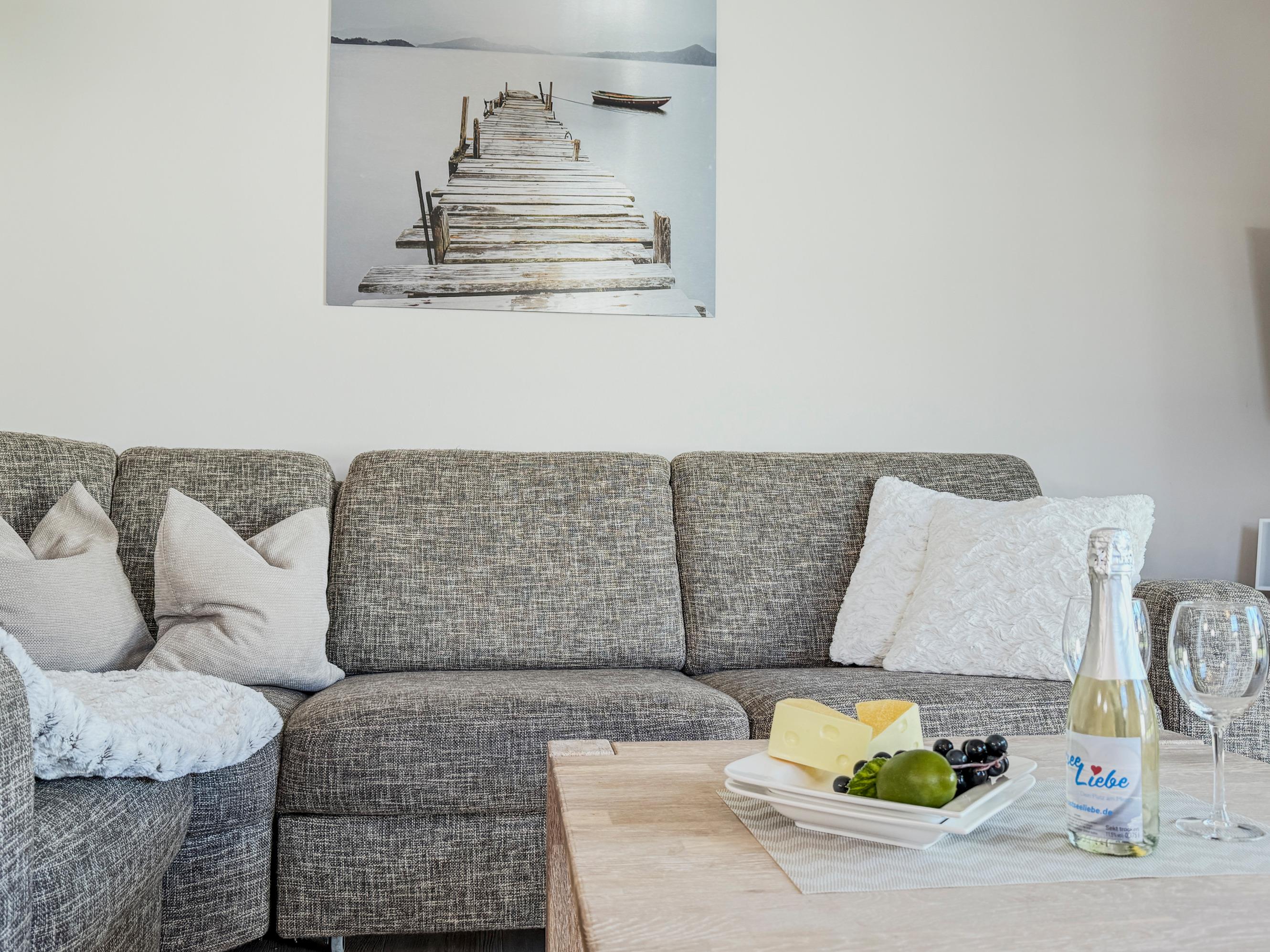 Lichtdurchfluteter Wohnbereich mit WLAN, Soundbar und gemütlicher Atmosphäre