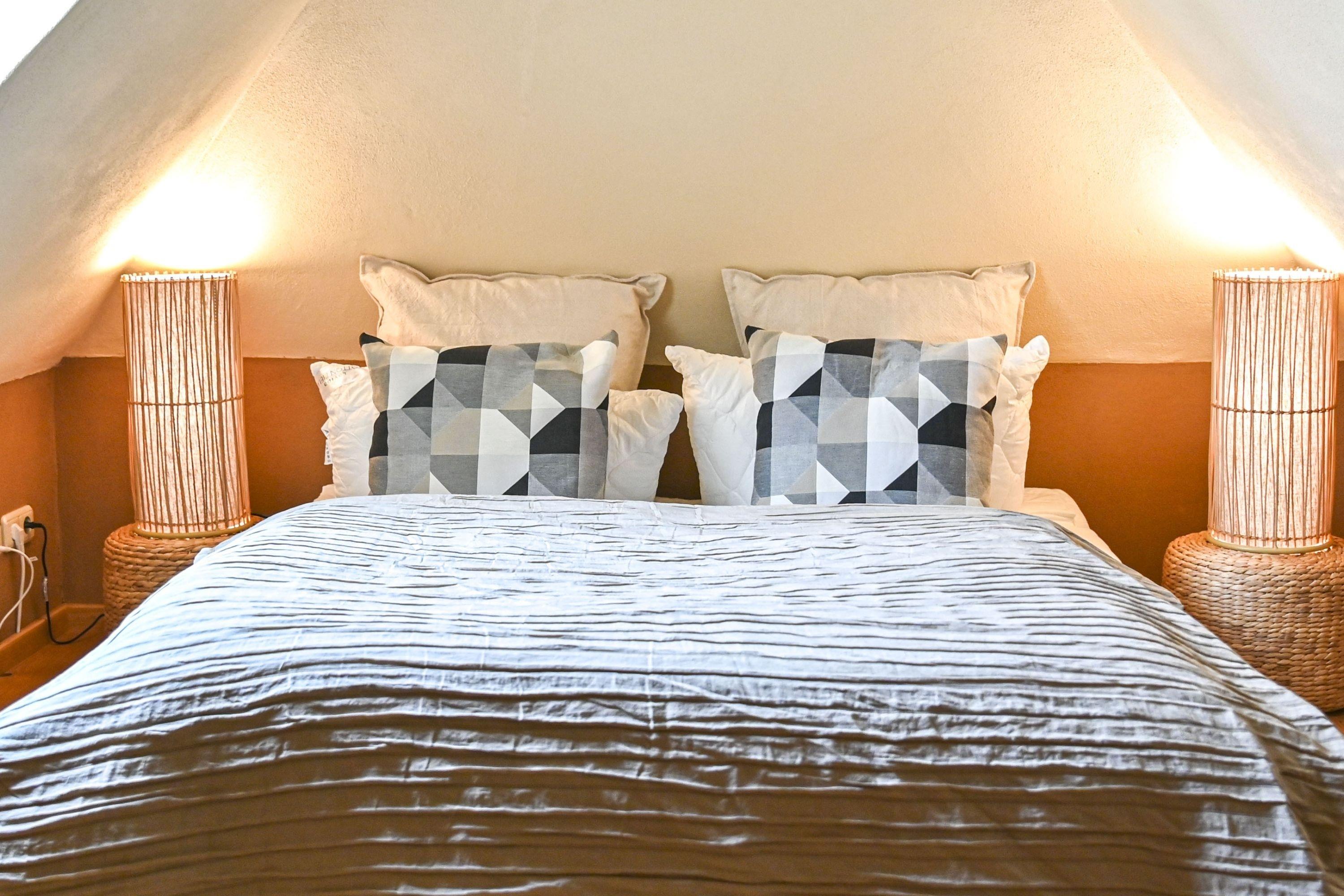 Ein Dachgeschoss-Schlafzimmer mit französischem Bett (140 x 200 cm)