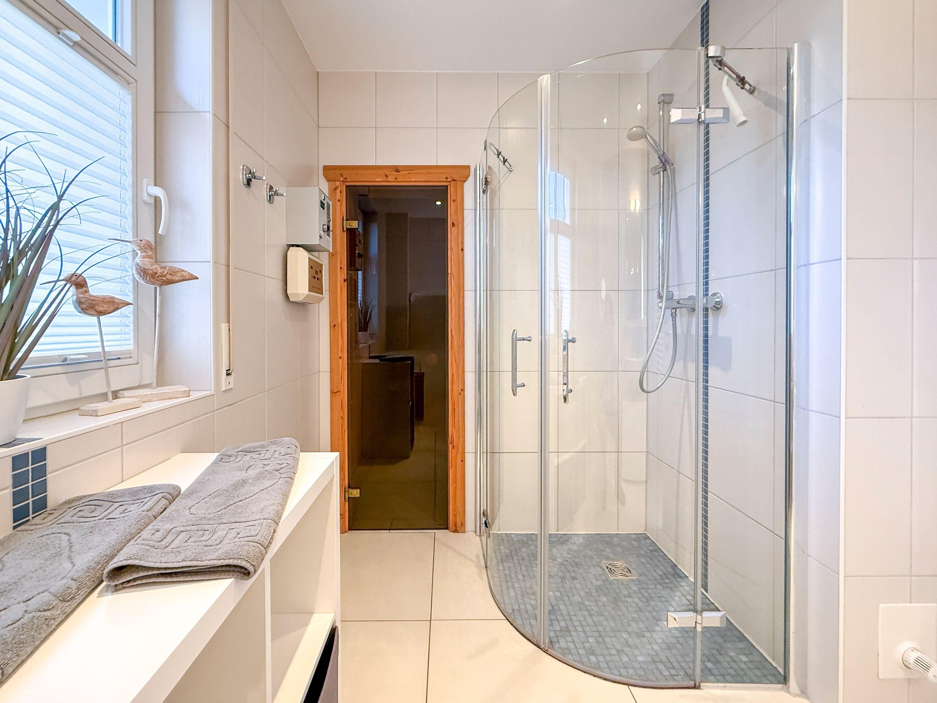 Nach einem Spaziergang am Strand oder einem Ausflug zum Bodden wartet die hauseigene Sauna auf Sie – ein Ort wohltuender Entspannung, besonders an kühlen Herbst- und Wintertagen.
