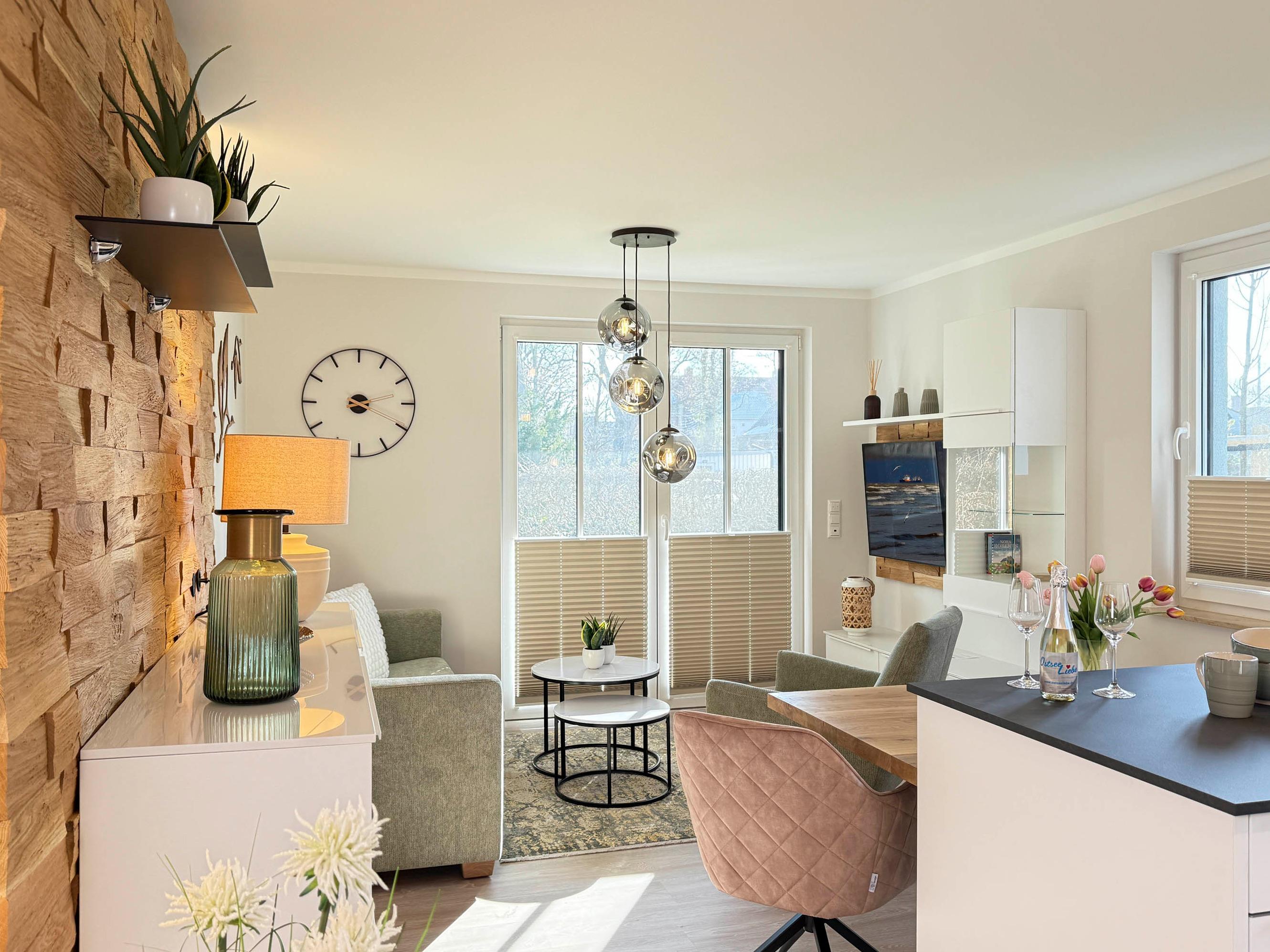 Willkommen in der Ferienwohnung "Küstenzauber" in Zingst! Diese moderne und komfortabel ausgestattete Unterkunft bietet auf 50 m² Platz für bis zu 2 Personen und verbindet nordisches Design mit einer einladenden Wohlfühlatmosphäre.