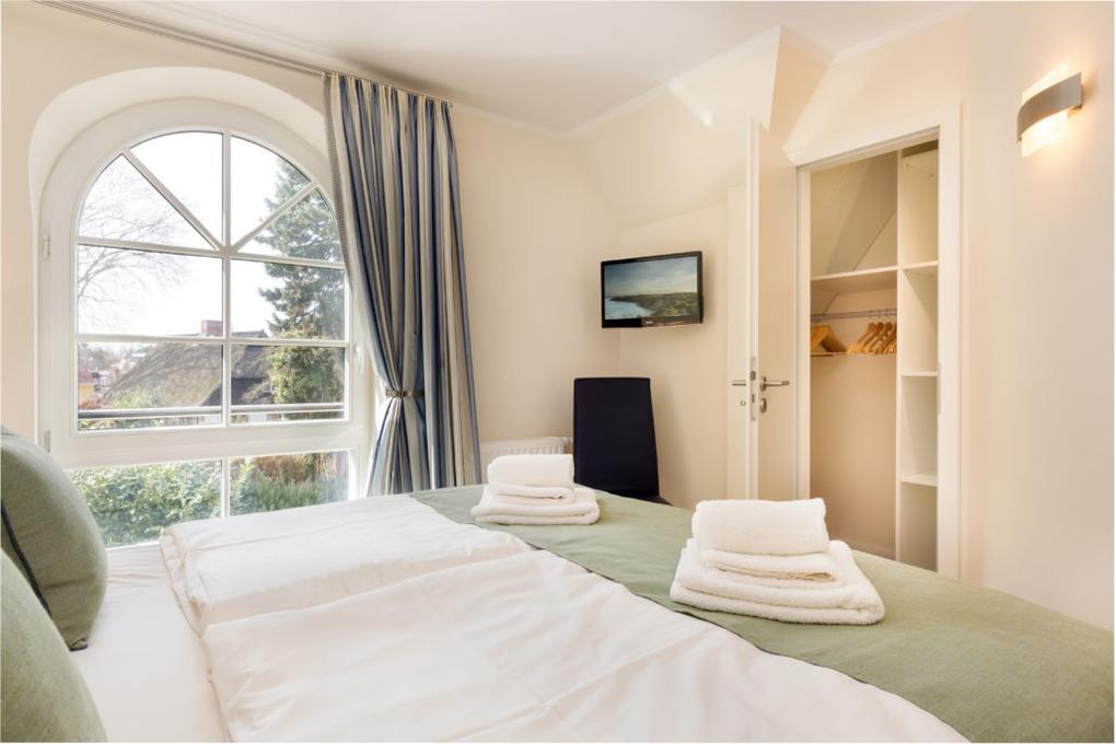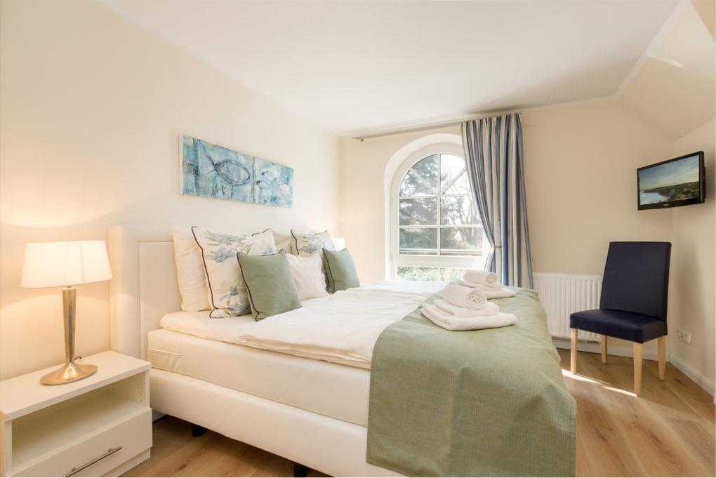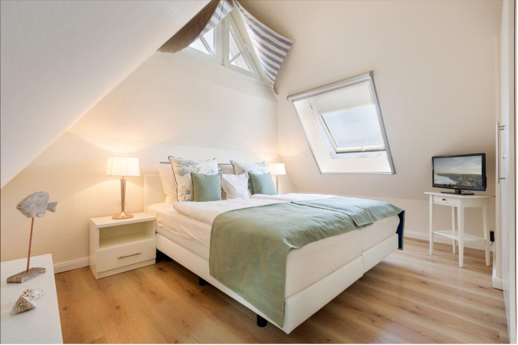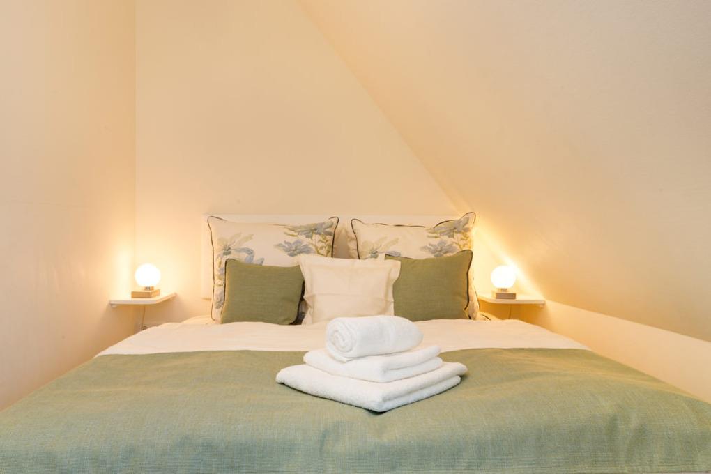 Zwei geschmackvoll eingerichtete Schlafzimmer : Mit komfortablen Doppelbetten im Obergeschoss