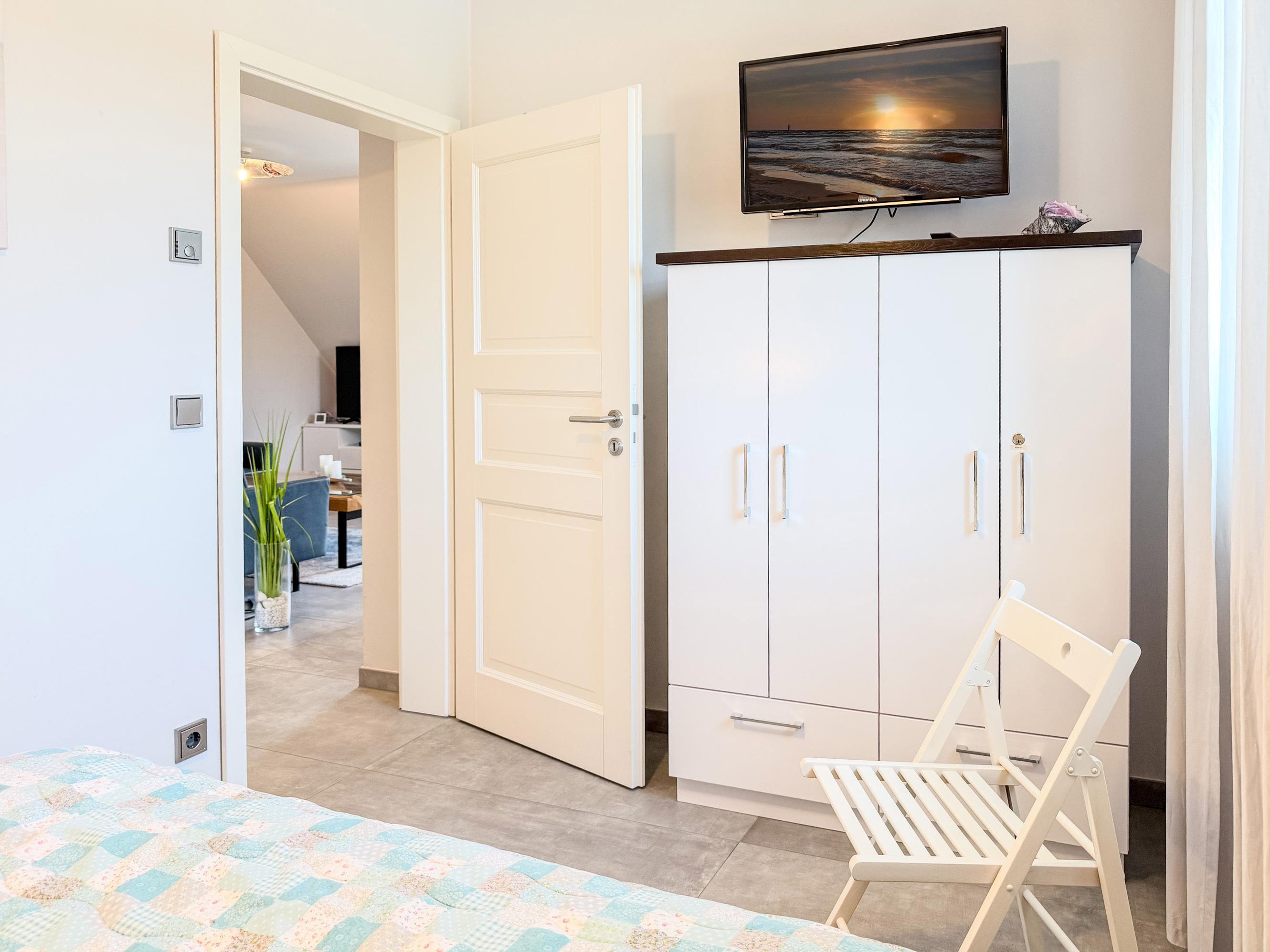 Schlafzimmer 2: Doppelbett (160 × 200 cm) mit eigenem TV