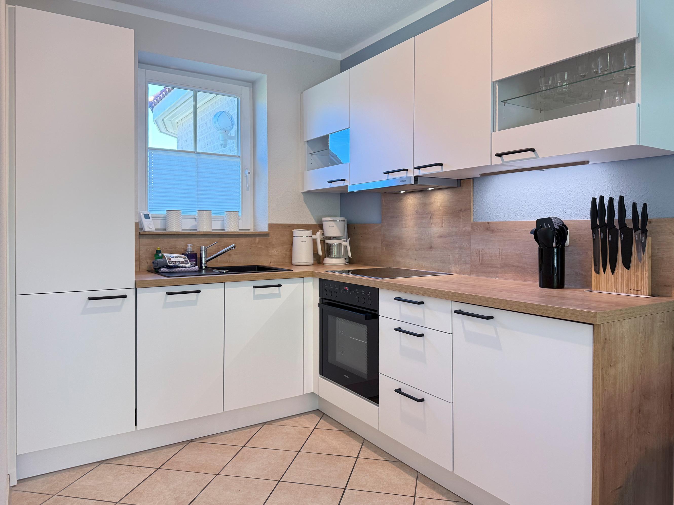 Voll ausgestattete Küche: Mit Backofen, Geschirrspüler und allen notwendigen Küchenutensilien.