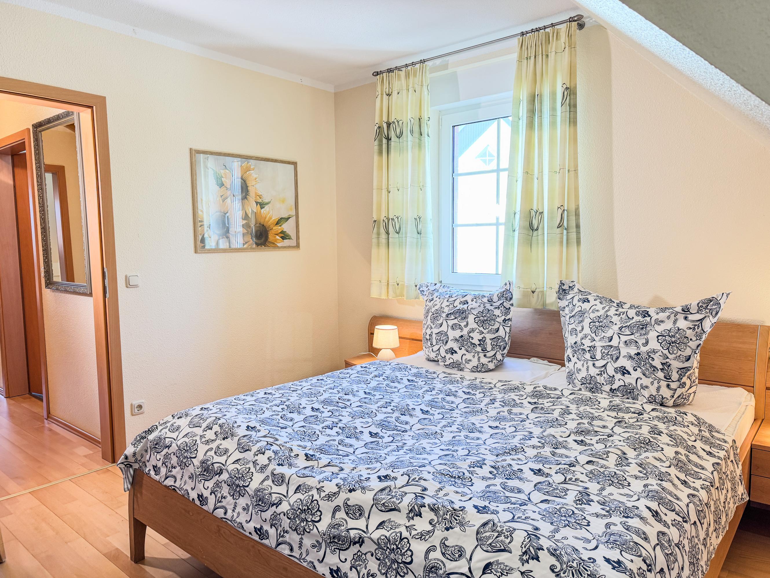 Drei Schlafzimmer: zwei mit Doppelbetten, eines mit zwei Einzelbetten