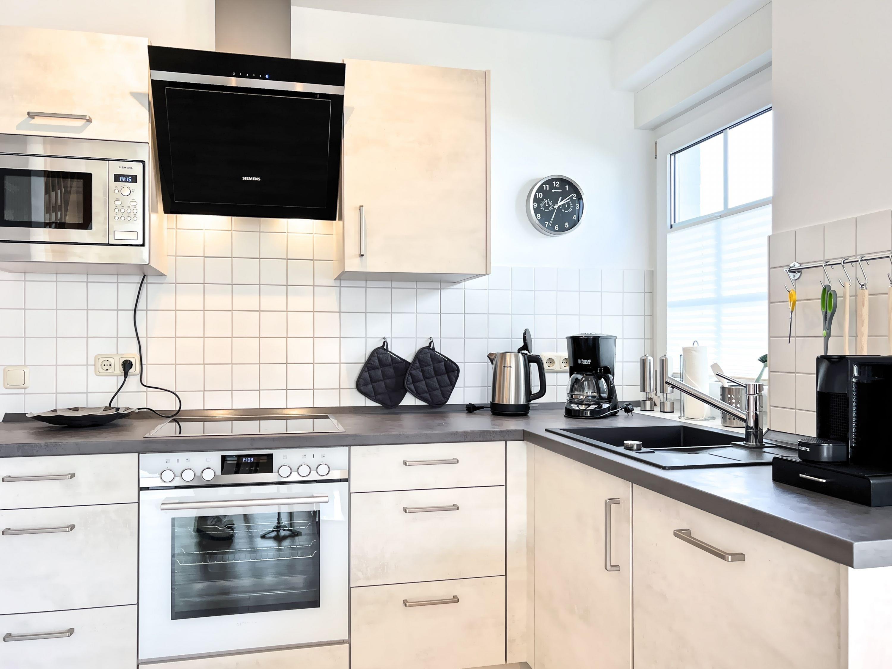 Voll ausgestattete Küche mit Geschirrspüler und Mikrowelle