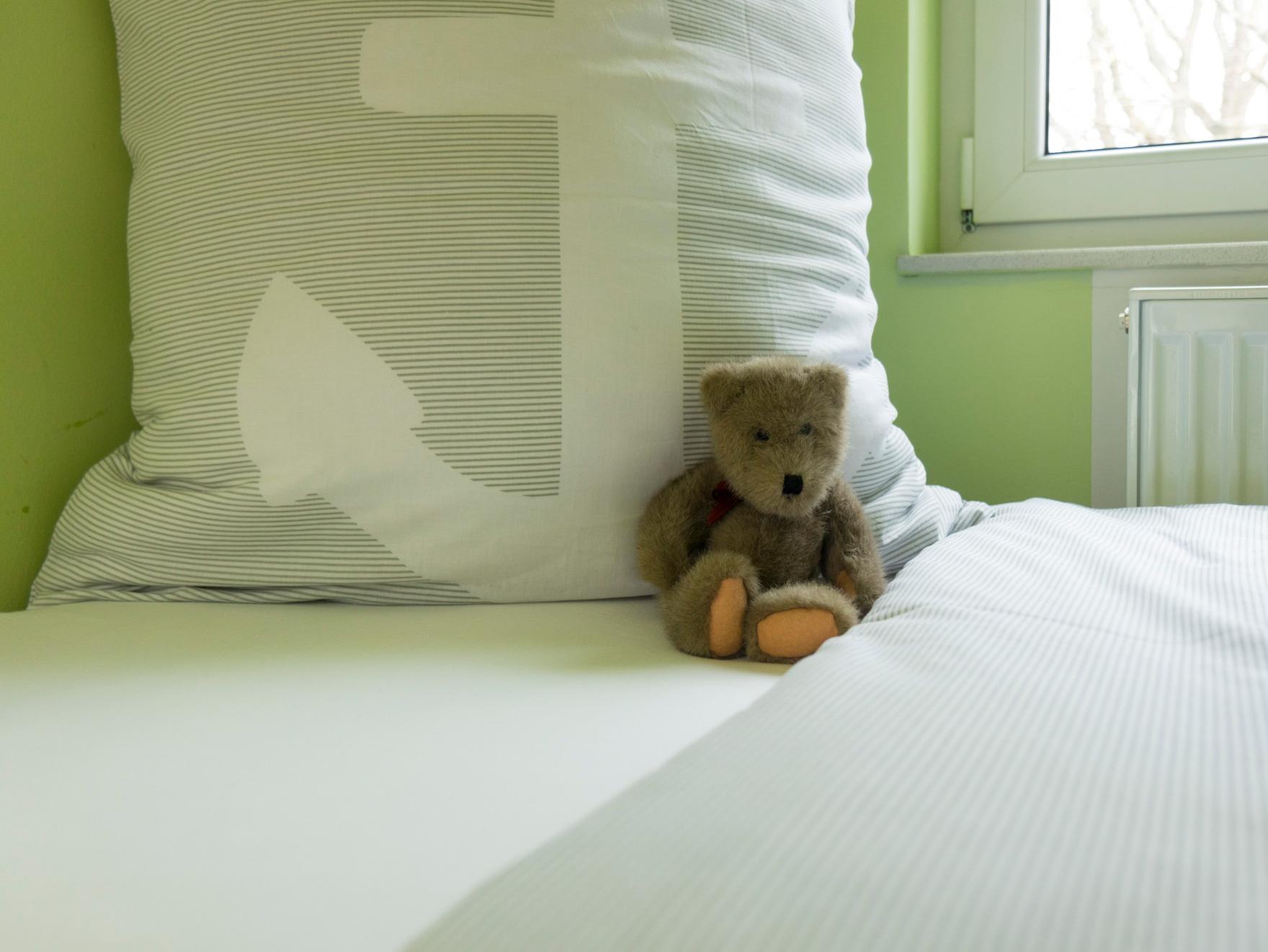 Zwei gemütliche Schlafzimmer: eines mit Doppelbett (180x200 cm), das andere mit zwei Einzelbetten (je 90x200 cm)