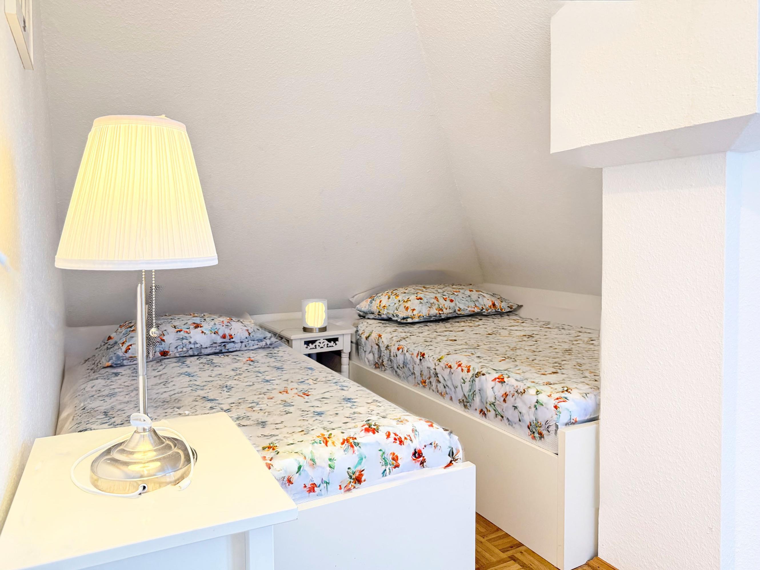 Drei Schlafzimmer: Hauptschlafzimmer mit Doppelbett, Kinderzimmer mit Einzelbetten