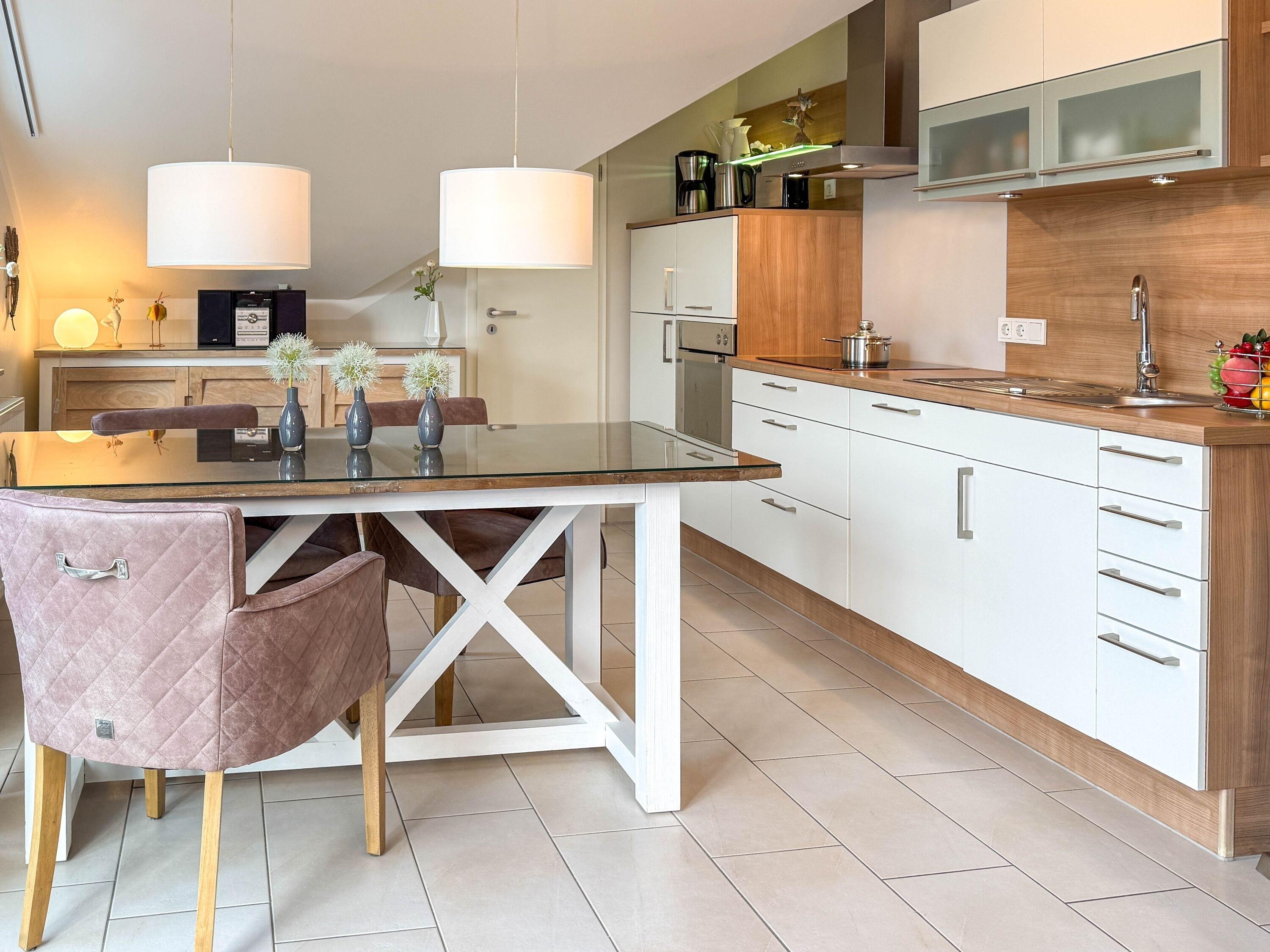 Die Ferienwohnung empfängt Sie mit einem großzügigen und stilvollen Wohnkonzept, das keine Wünsche offenlässt. Der offene Wohn- und Essbereich ist das Herzstück der Wohnung und lädt zu gemütlichen Abenden mit der Familie oder Freunden ein.