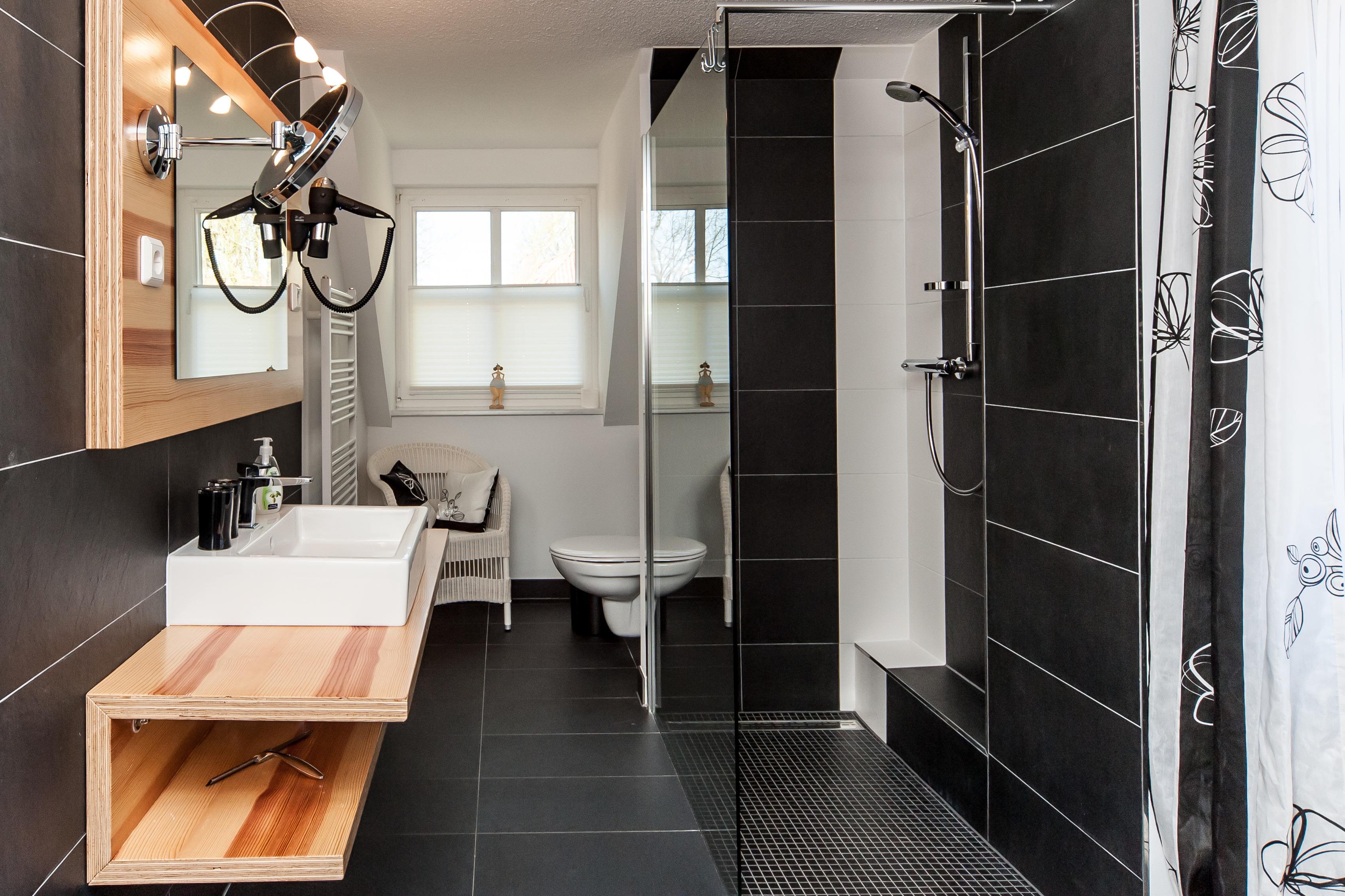 - das Bad hat eine ebenerdige Dusche und eine Wärmekabine