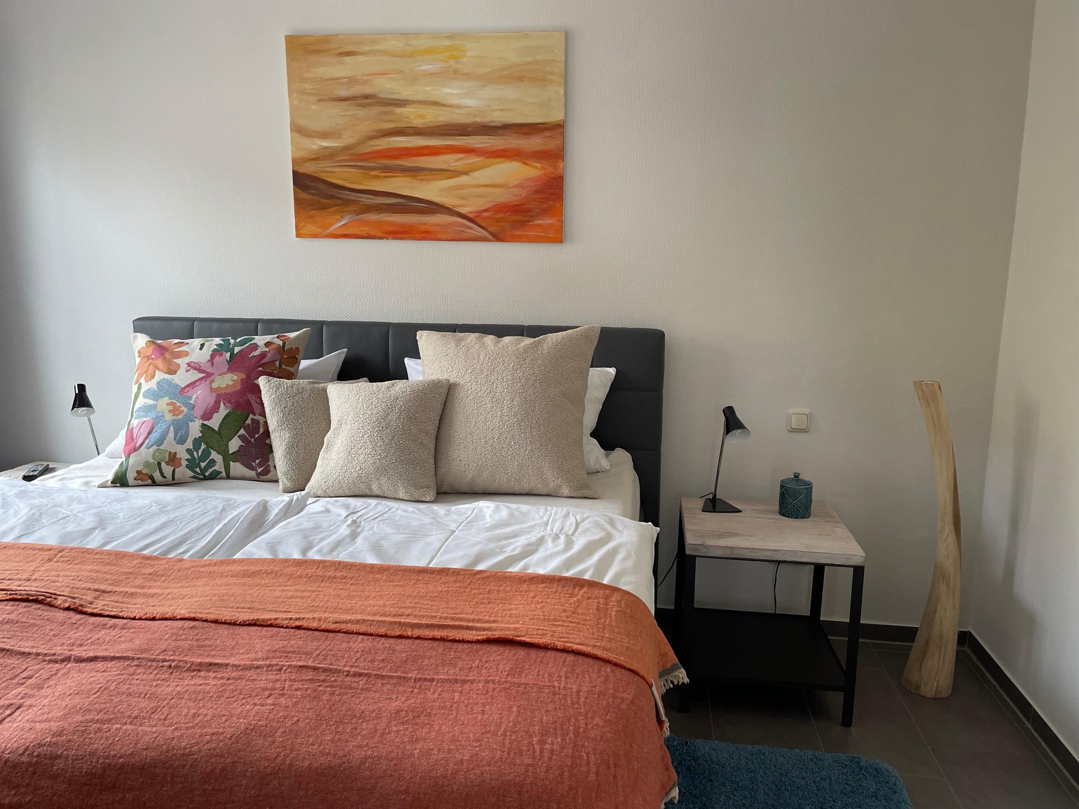 Die Ferienwohnung ist ausgestattet mit einem Wohnraum, zwei Schlafräumen (1x Doppelbett , 1x Futonbett (160 cm breit)), einer komplett eingerichteten