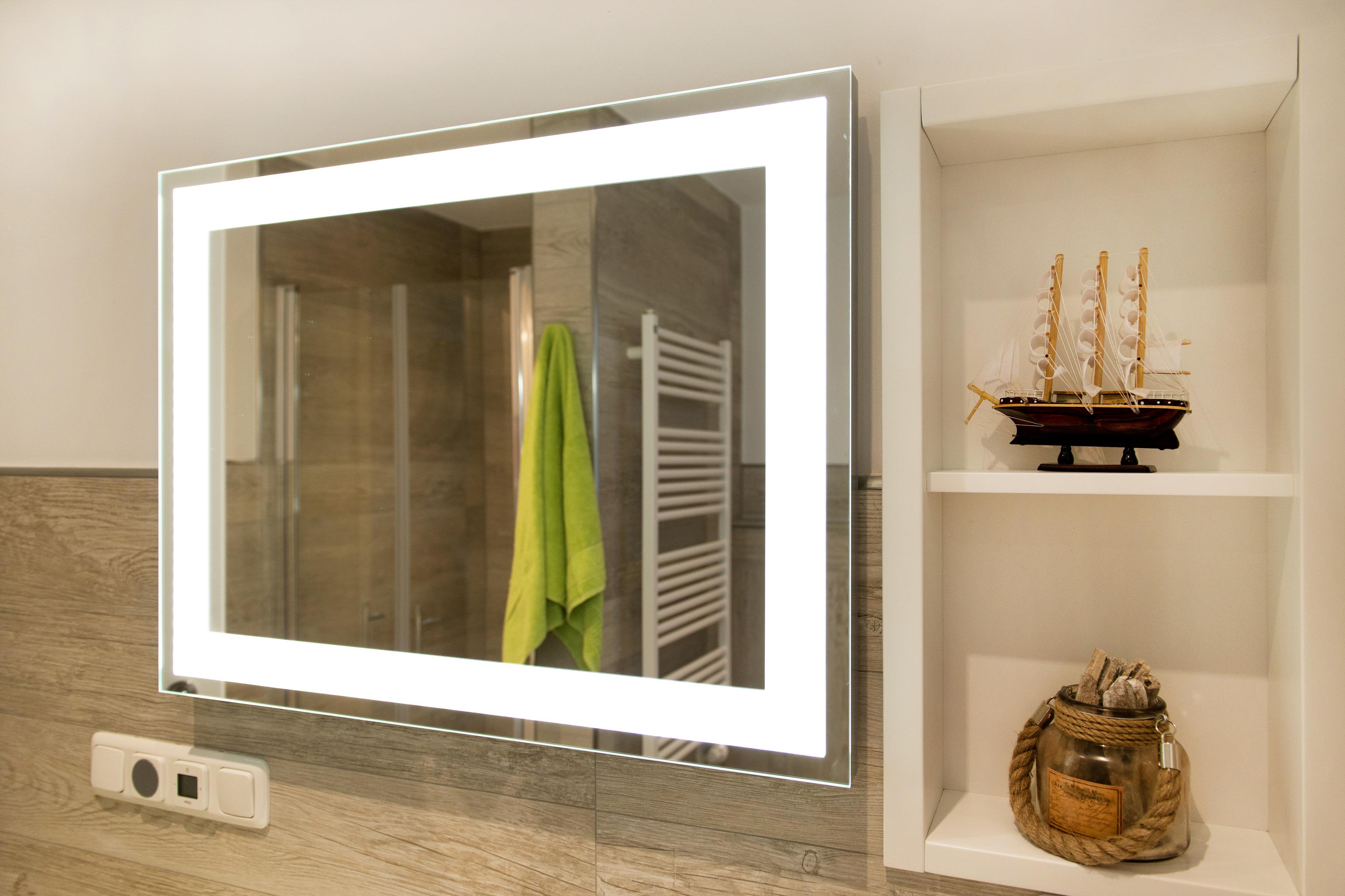 Die beiden Schlafräume sind mit LED-TVs ausgestattet und bieten mit einem Boxspringbett (180 x 200cm) bzw. einem Doppelbett mit verstellbaren Lattenrosten und Matratzen unterschiedlichen Schlafgenuss. In beiden Schlafzimmern steht Ihnen jeweils ein großzügiger Kleiderschrank mit Kofferfach zur Verfügung. Das Badezimmer ist mit einer ebenerdigen Dusche, einem Deckenwärmestrahler, einem Badradio, einem Waschtisch, Kosmetikspiegel, Fön und Handtuchtrockner sowie ausreichender Ablagefläche ausgestattet.