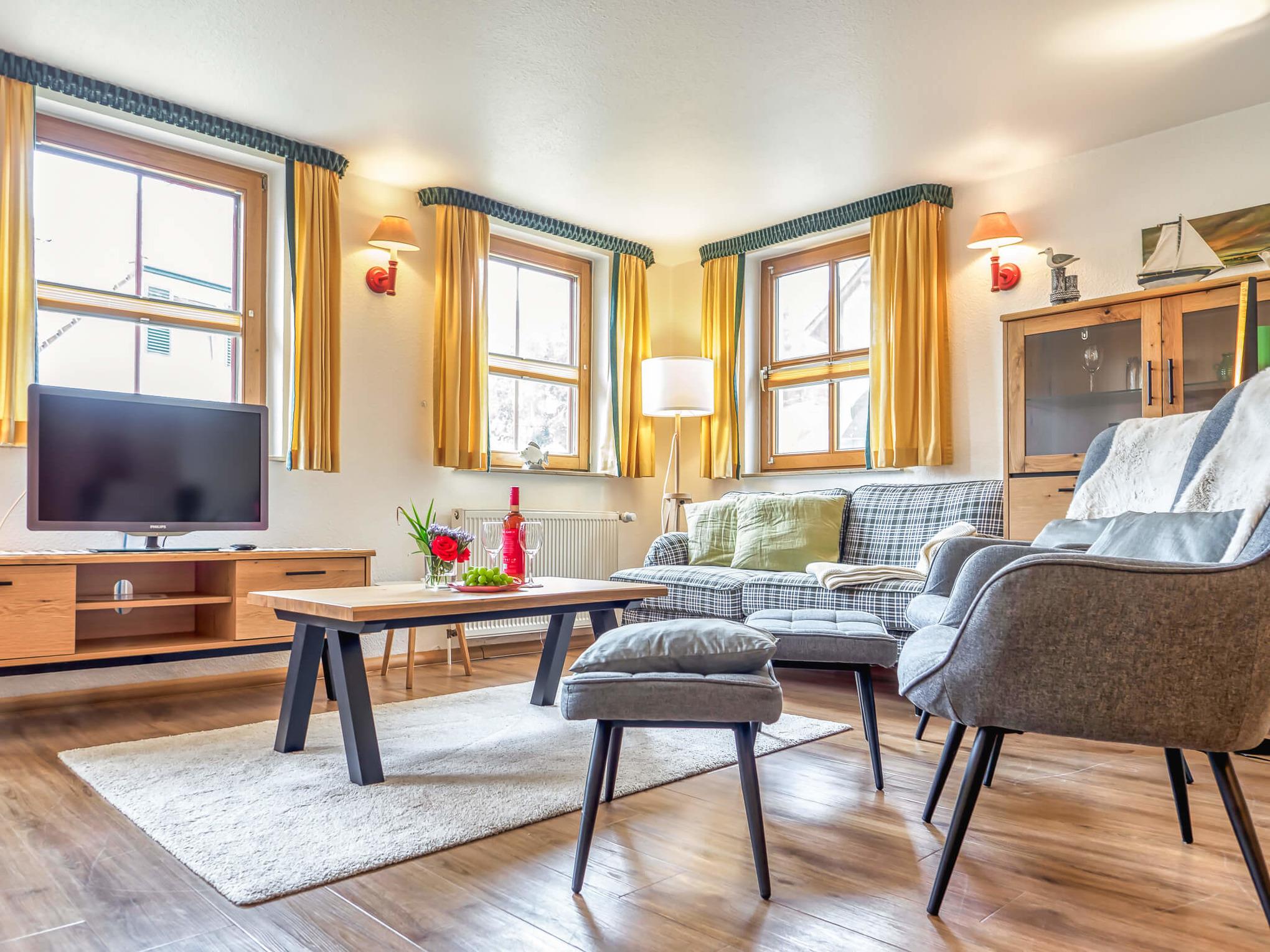 Die Ferienwohnung ist ausgestattet mit einem Wohnraum, einer komplett eingerichteten Küchenzeile, zwei Schlafräumen (1x Doppelbett, 1x Schlafsofa) und einem Bad mit Dusche und WC sowie einem Fön. Zur weiteren Einrichtung gehören ein SAT-TV und eine Musikanlage mit Radio.