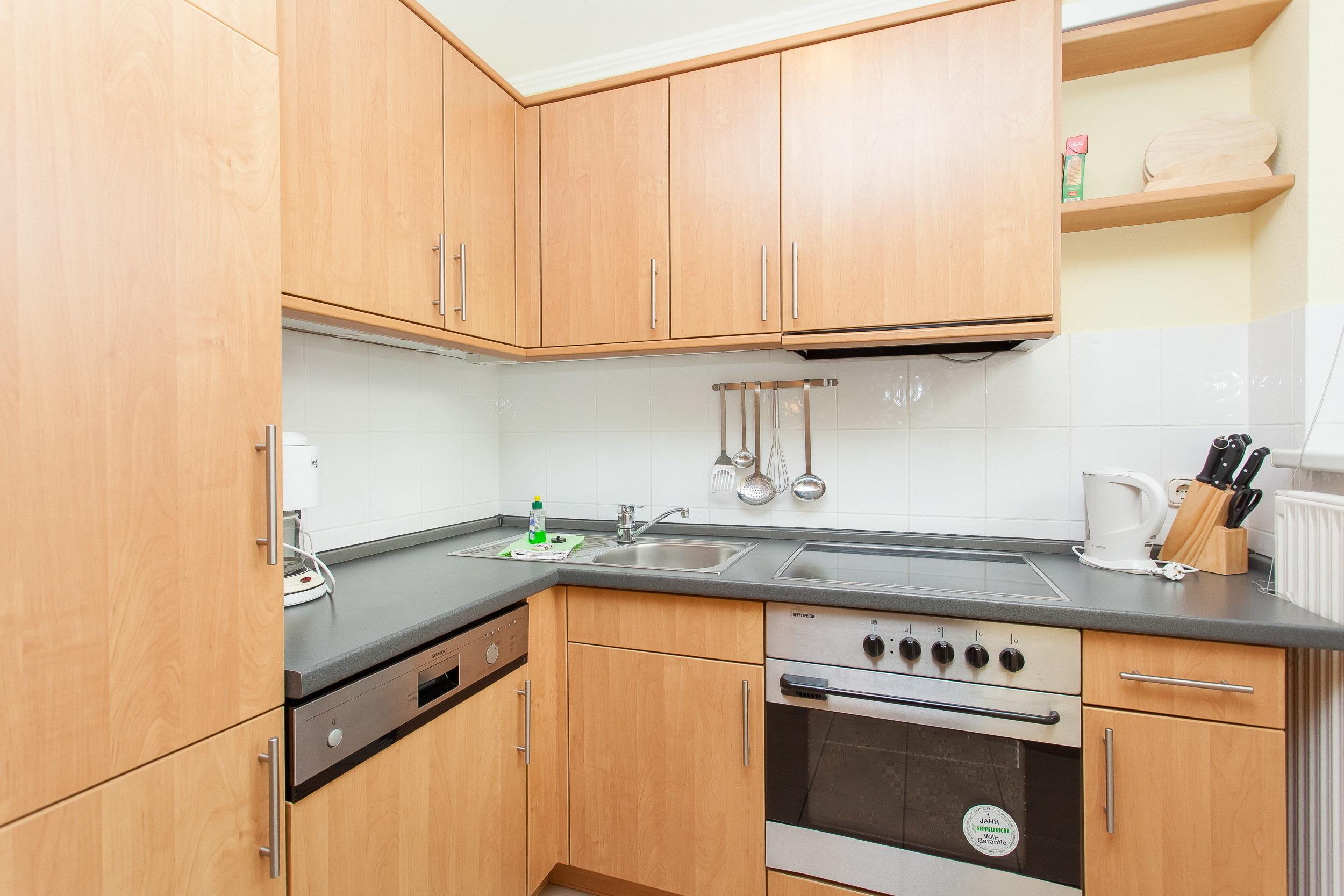 Sie beinhaltet zwei Schlafräume (Doppelbetten), dem Wohnbereich mit Küchenzeile und einem Bad mit Wanne und WC.