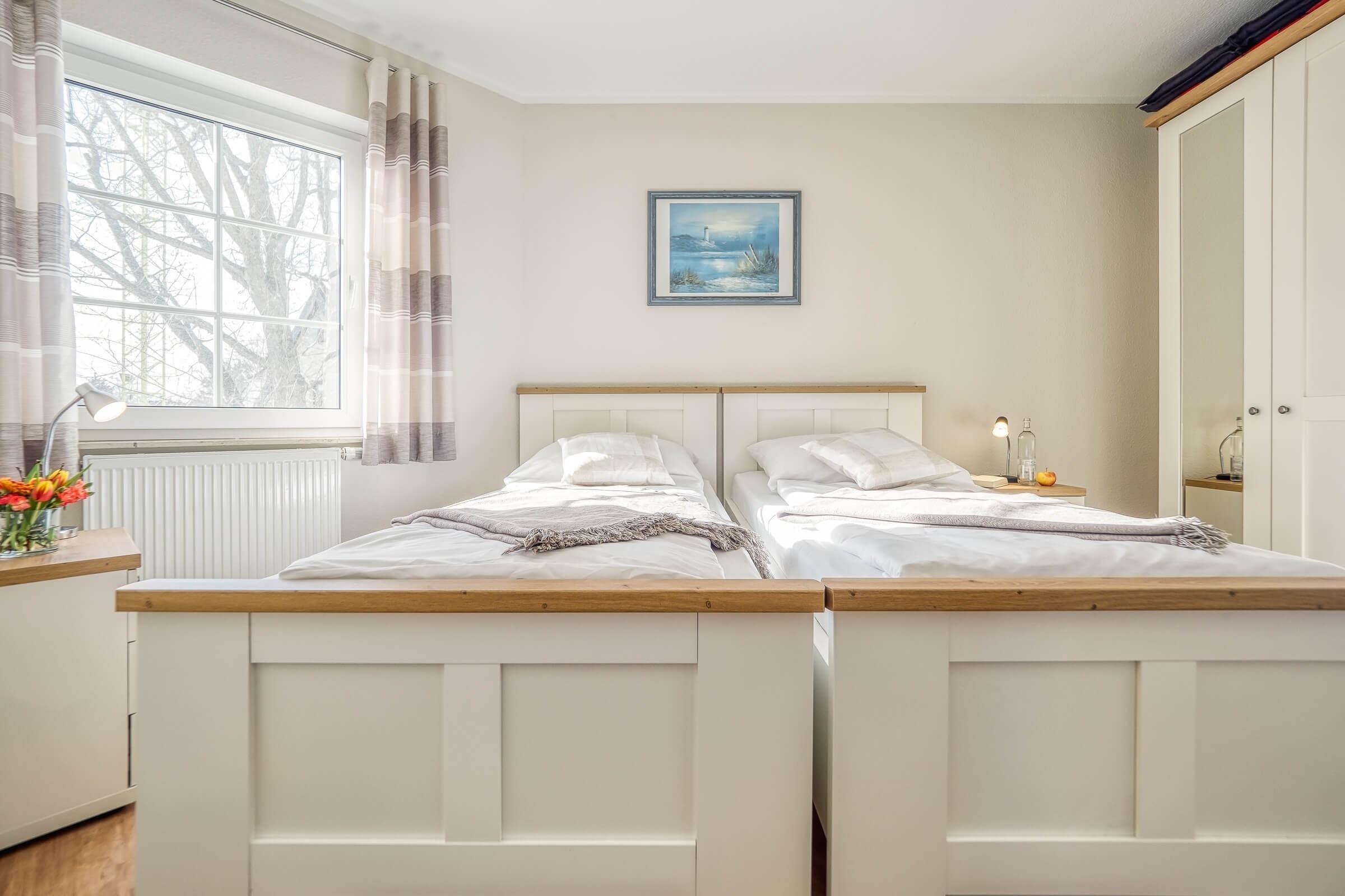 Sie ist ausgestattet mit zwei Schlafräumen (1x1 Doppelbett, 2x1Einzelbett), einem Wohnbereich mit Küchenzeile, sowie einem Bad mit Dusche und WC und einem Gäste-WC.