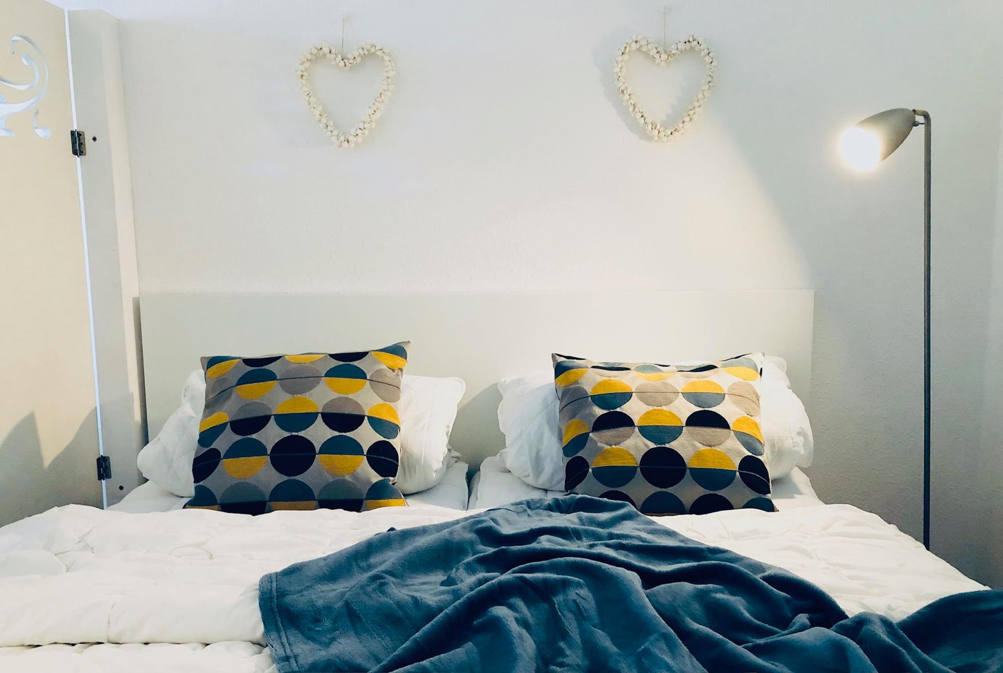 ? Wohnkomfort mit Charme – Das liebevoll eingerichtete Apartment bietet ein Doppelbett (1,60 m breit), das durch eine stilvolle spanische Wand vom Wohnbereich getrennt ist. Die Schlafcouch ergänzt die Schlafmöglichkeiten für weitere Gäste.