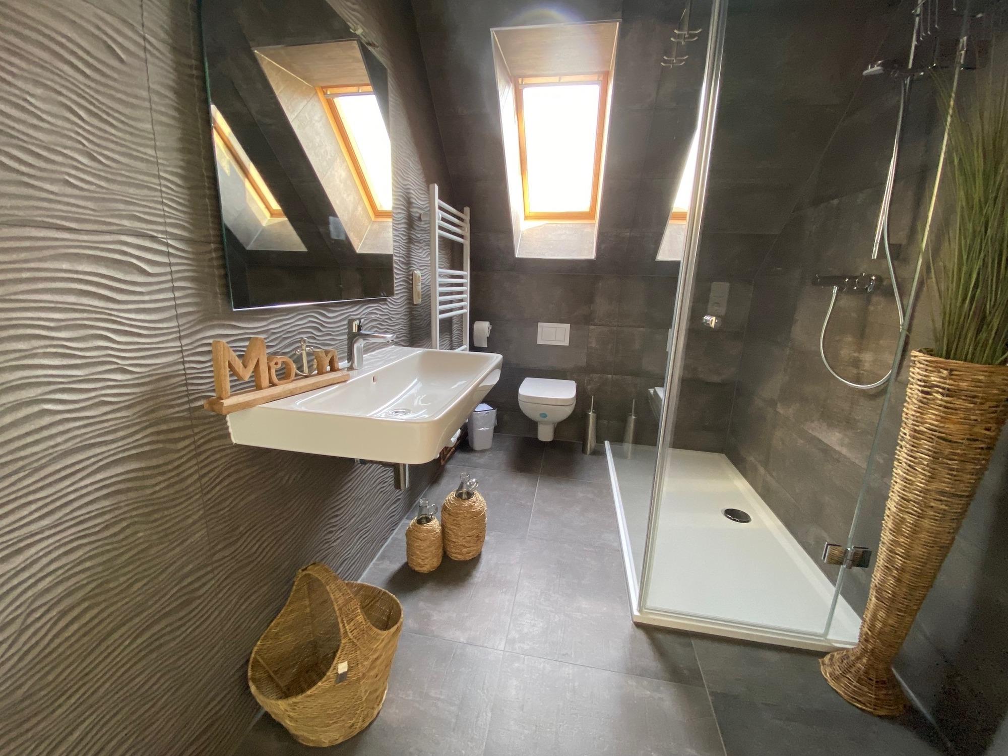Im Erdgeschoß und im Obergeschoss befinden sich je ein tolles, luxoriöses Duschbad.