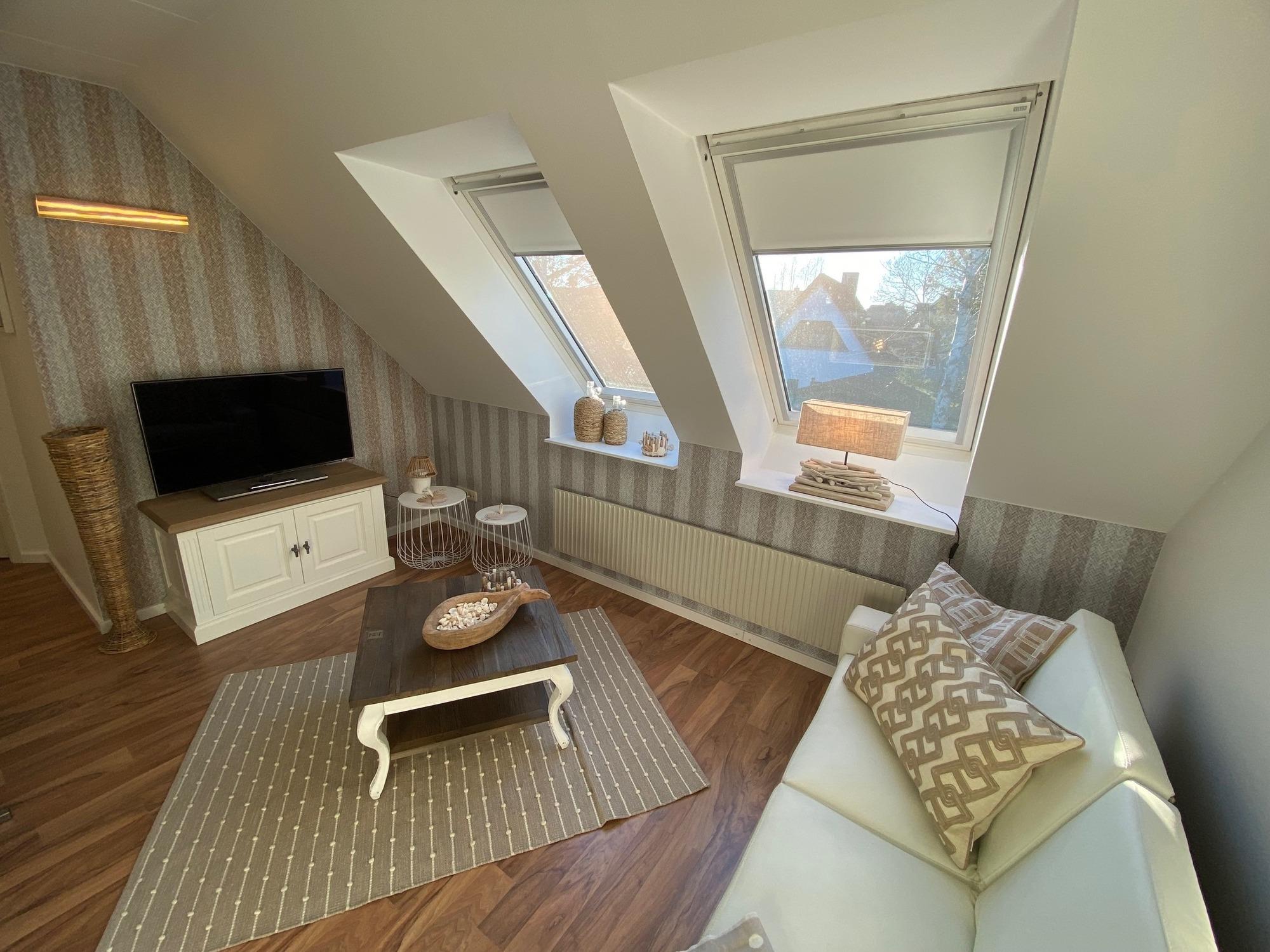 Wohnbereich: Der stilvoll eingerichtete Wohn- und Aufenthaltsbereich im Erdgeschoss verfügt über Esstisch, Couch und Satelliten-TV. Auf einer gemütlichen Sitzgruppe genießen Sie Ihren Roman oder einen Film. Eine angrenzende Terrasse rundet Ihr Vergnügen ab. Für die Gemütlichkeit steht ein Kamin zur Verfügung.