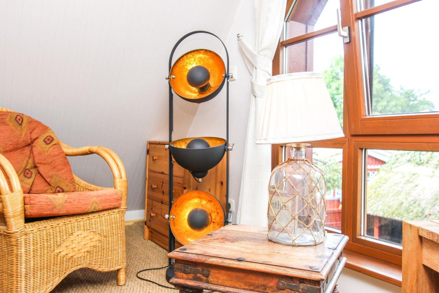 Über eine Treppe betritt man den geschmackvoll eingerichteten Wohn- und Schlafbereich im Spitzboden.
