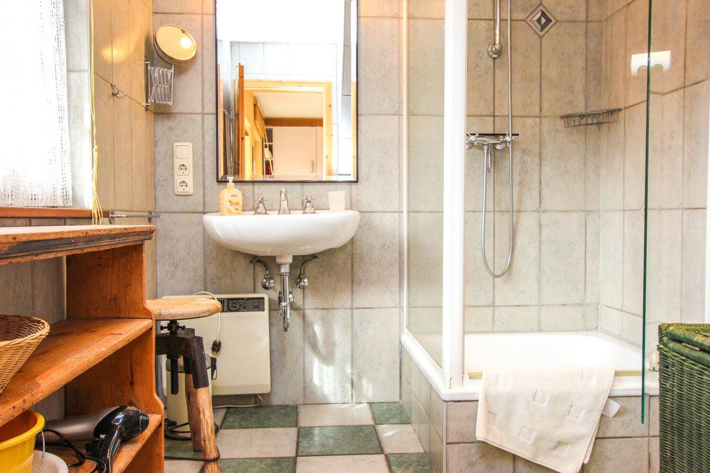 Dieses gemütliche und sehr liebevoll eingerichtete Ferienhaus im Herzen Zingst's hat ca. 60 qm Wohnfläche und ist für zwei Erwachsene und maximal ein Kind geeignet. Sie betreten das Ferienhaus und gelangen in die komplett ausgestattete Wohnküche mit einem Essplatz für vier Personen und ausreichend Tageslicht durch zwei große Fenster. Ebenfalls im Erdgeschoss befindet sich das helle Duschbad.