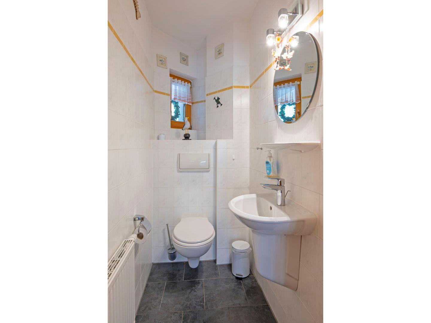 Ein Gäste-WC sowie ein abgetrennter Eingangs- und Garderobenbereich sorgen für zusätzlichen Komfort. Vom Wohnzimmer gelangen Sie direkt auf die möblierte Terrasse, die zum Entspannen im Freien einlädt.