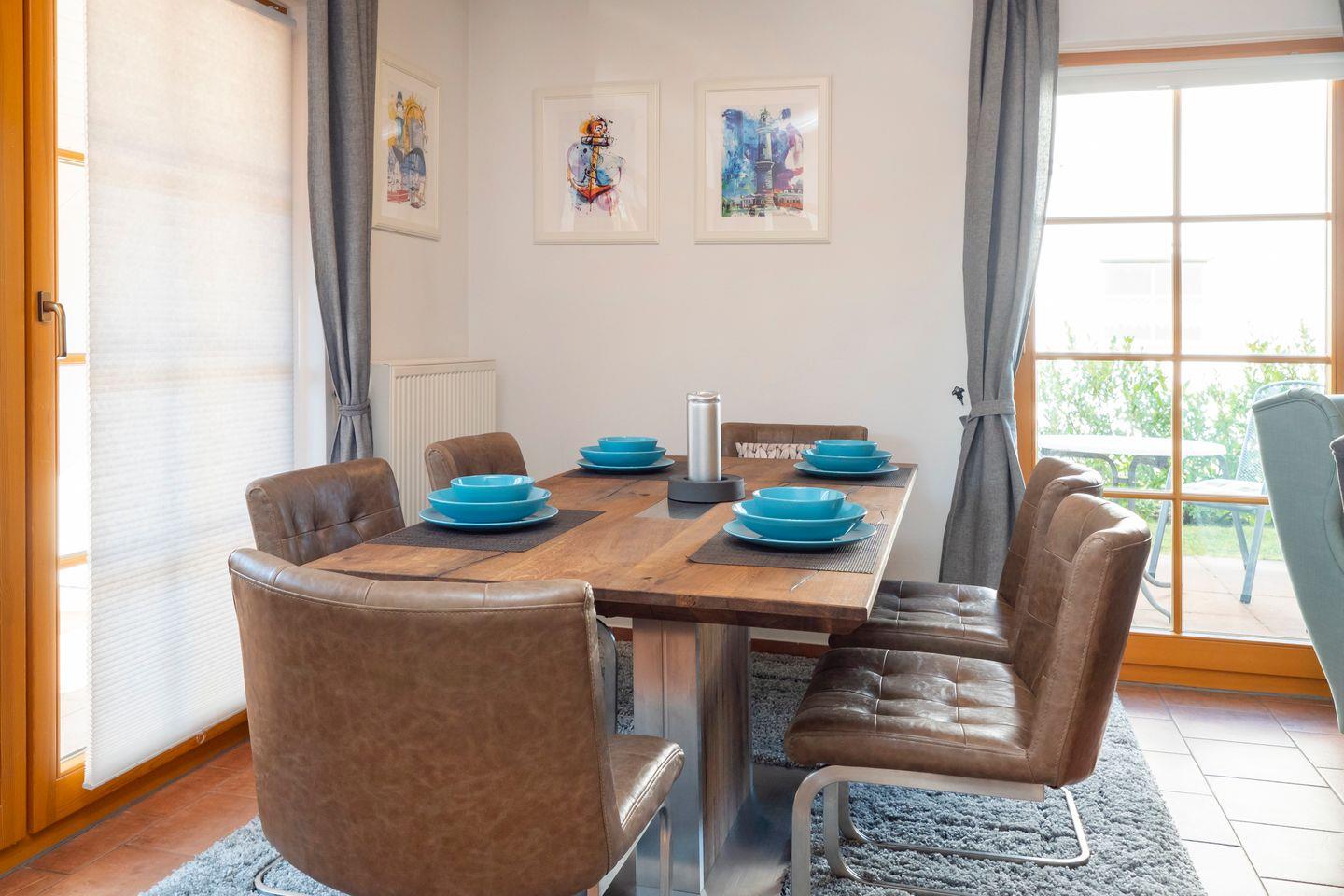 In der ersten Ebene läd der Wohnbereich mit Sitzgruppe, TV, DVD-Player, sowie ein Esstisch für 4 Personen zum Verweilen ein.