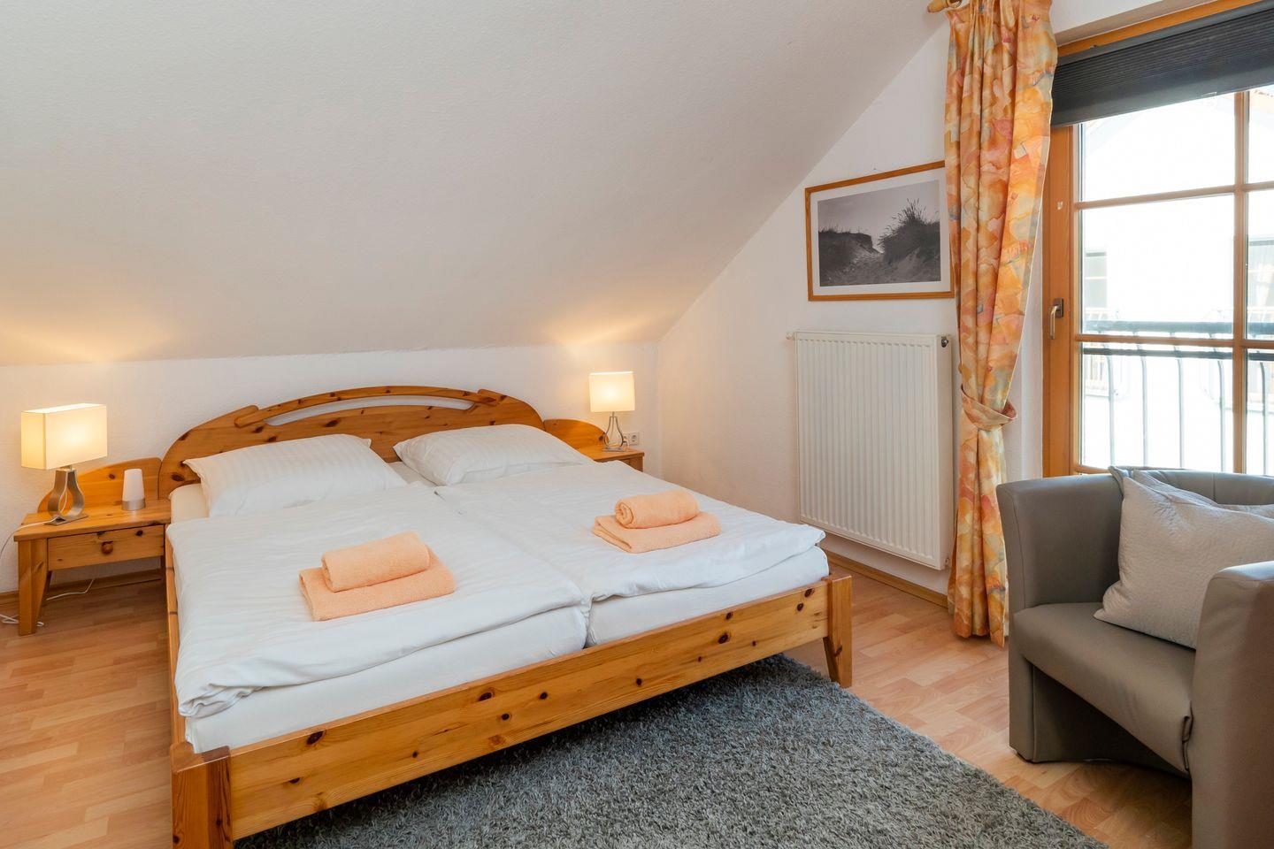 In einem Schlafzimmer befindet sich ein Doppelbett (2 Matratzen je 90 x 200) das zweite Schlafzimmer ist mit 2 Einzelbetten ausgestattet.