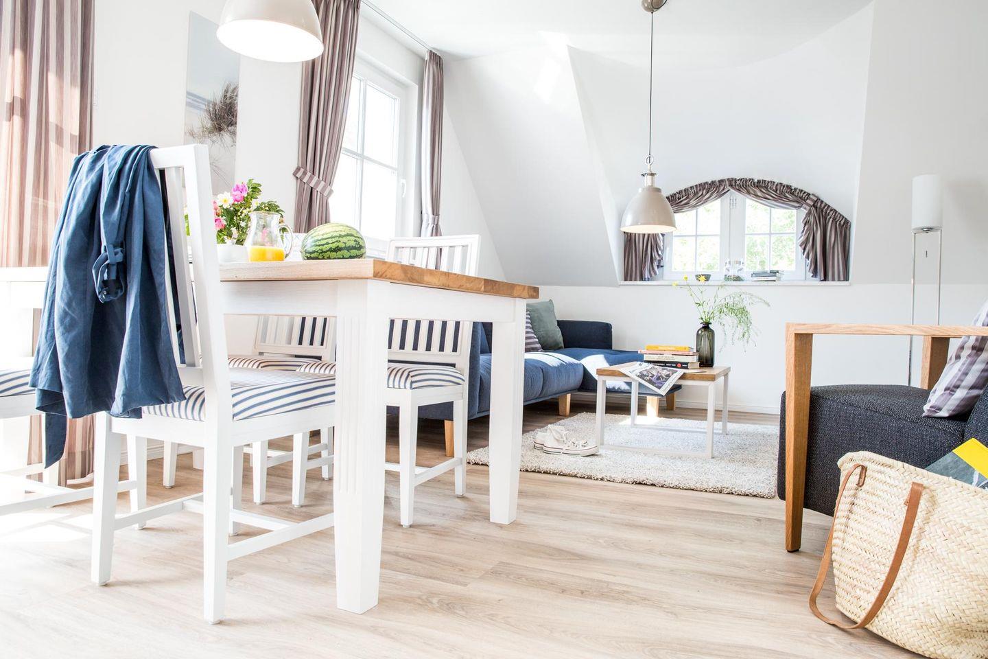 Die ca. 75 m² große Ferienwohnung eignet sich ideal für 2-4 Personen. Sie befindet sich im 1.Obergeschoss eines Mehrfamilienhaus. Das Haus liegt in 2.Reihe hinter dem Ostseedeich in Zingst, nur 70 m vom Strand entfernt. Ob Ahrenshoop, Prerow oder Barth – von hier aus lässt sich die Region Fischland-Darß-Zingst.