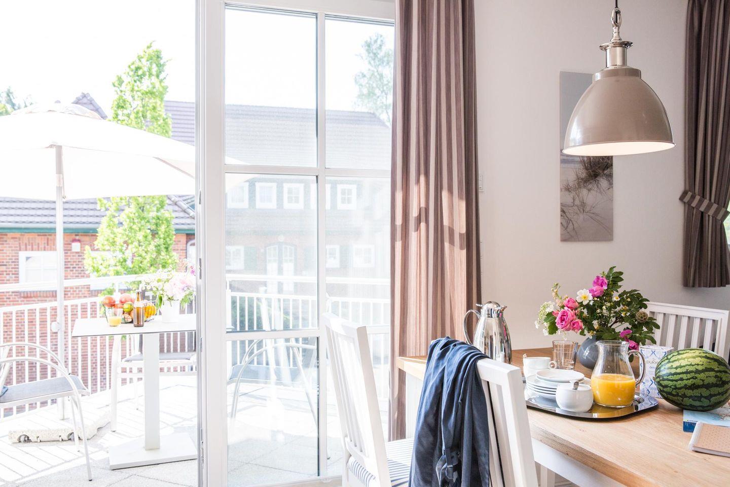 Die ca. 75 m² große Ferienwohnung eignet sich ideal für 2-4 Personen. Sie befindet sich im 1.Obergeschoss eines Mehrfamilienhaus. Das im März 2015 fertiggestellte Haus liegt in 2.Reihe hinter dem Ostseedeich. Der sonnige Balkon lädt zum Verweilen ein.